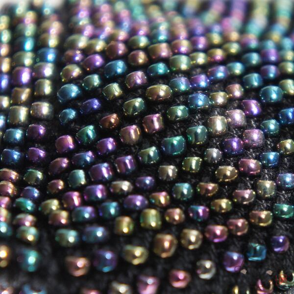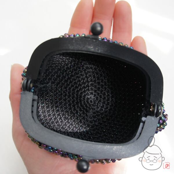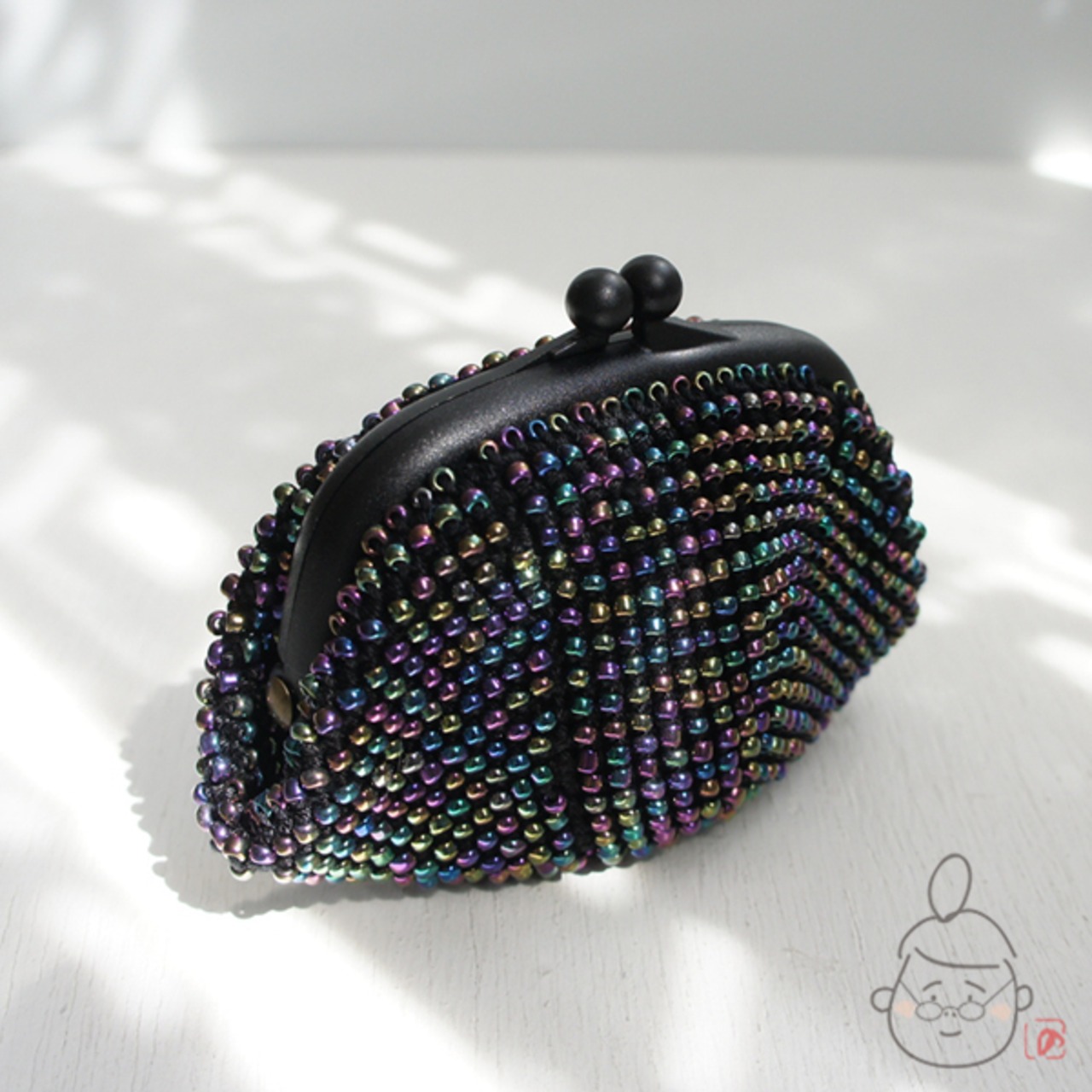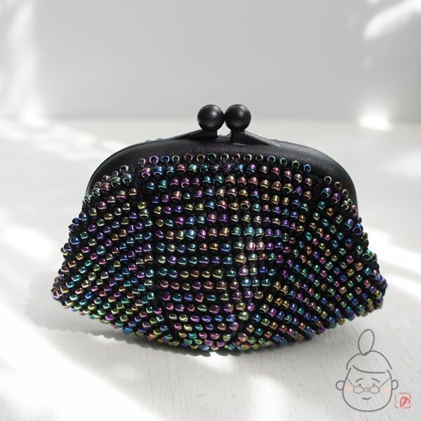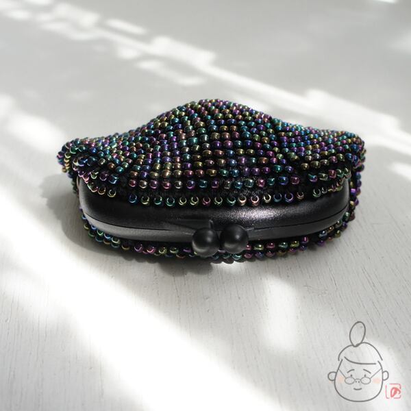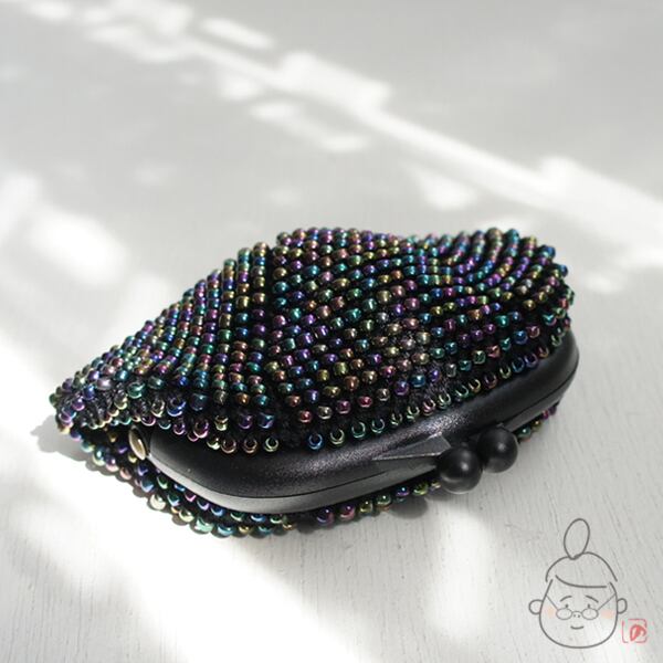 ガラスビーズをひとつぶづつ編み込んだがま口です。