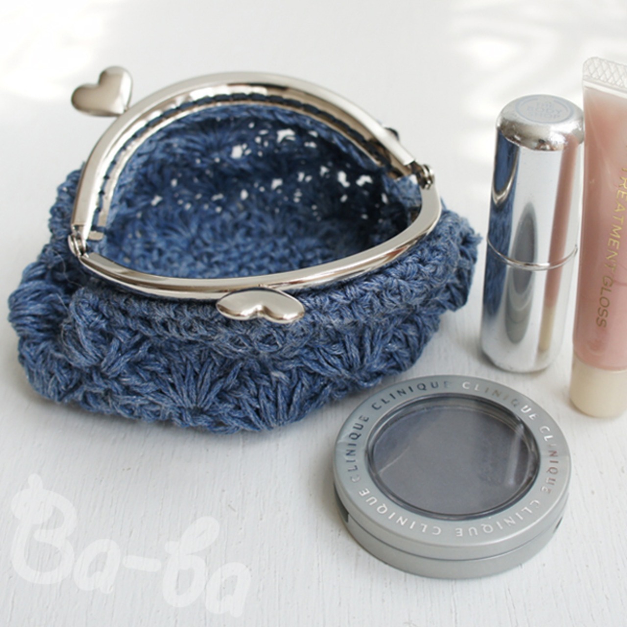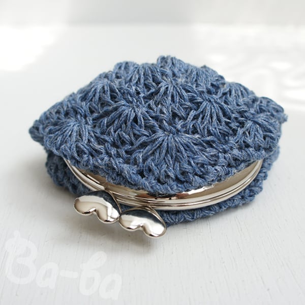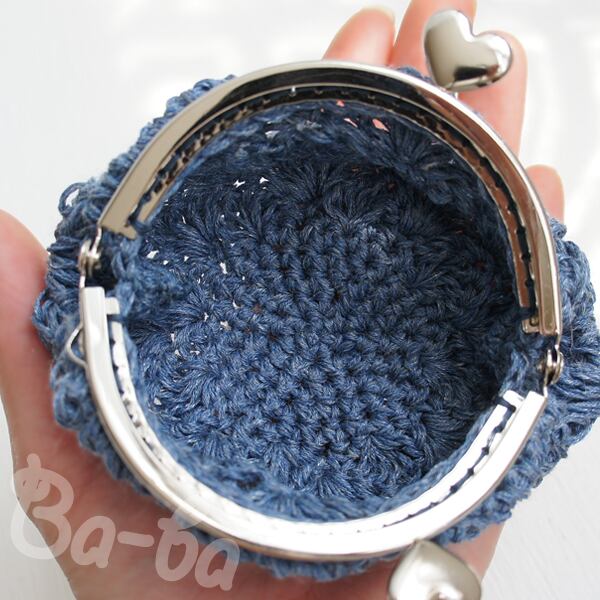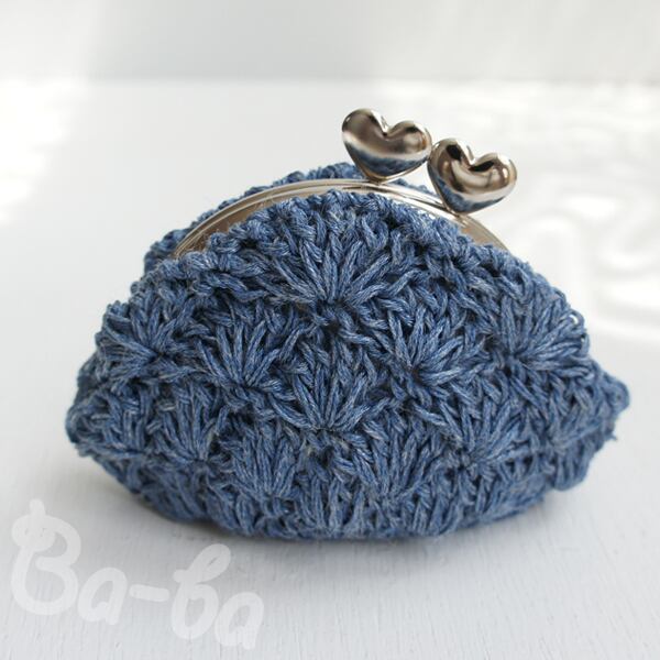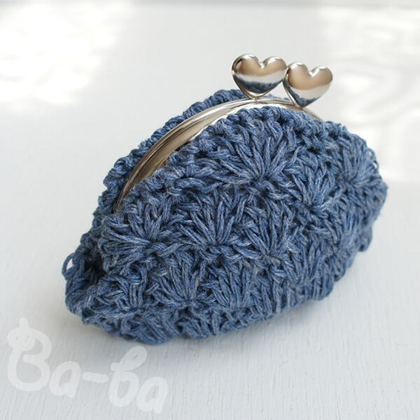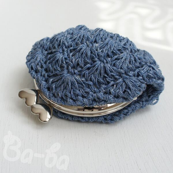 ばあば作♥松編みがま口(ramieblue・C970)