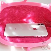 スマホ、12.5cmがま口もすっぽり入る大きさに出来上がりました。