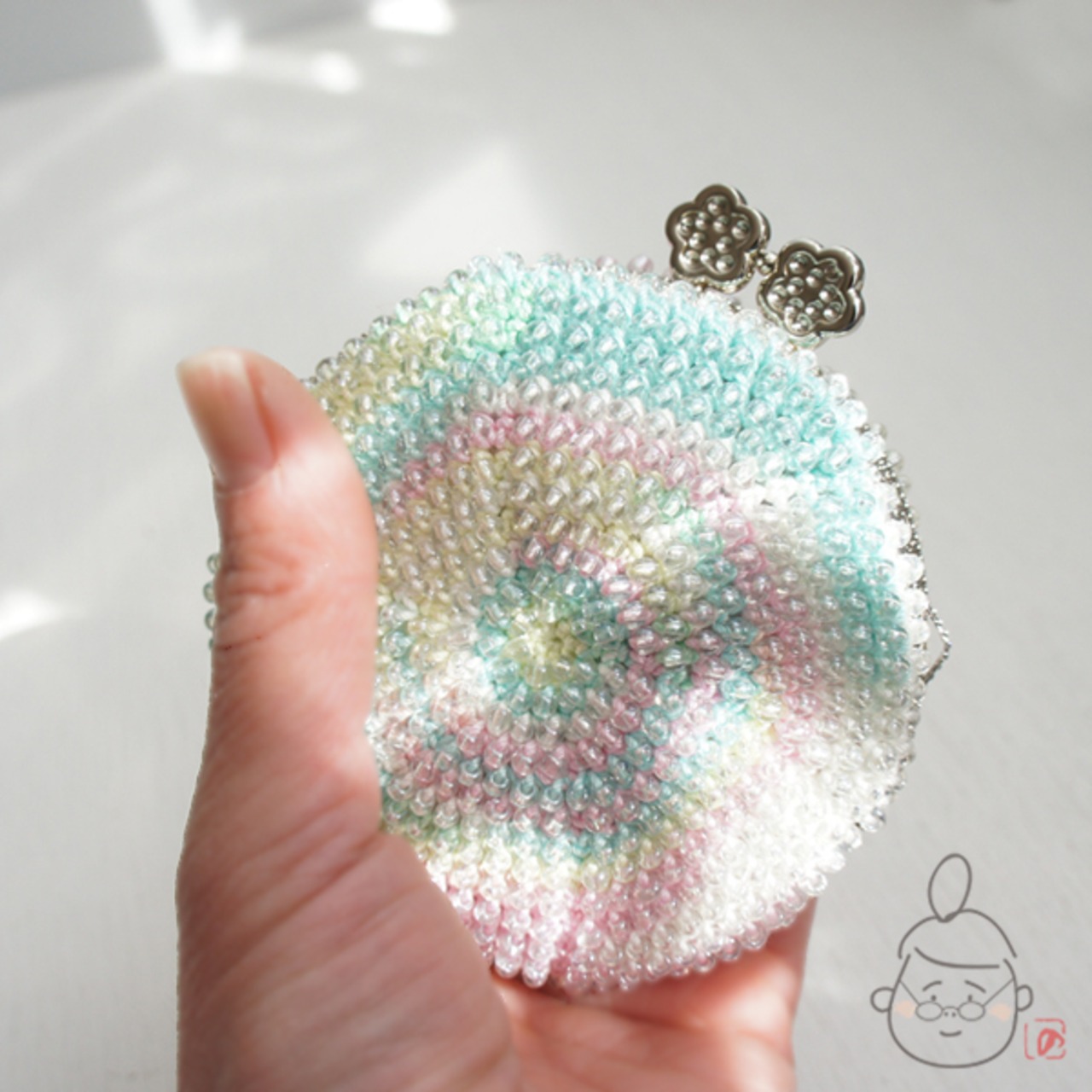 ばあば作♥ガラスビーズのまんまるがま口(cottoncandy・1186)