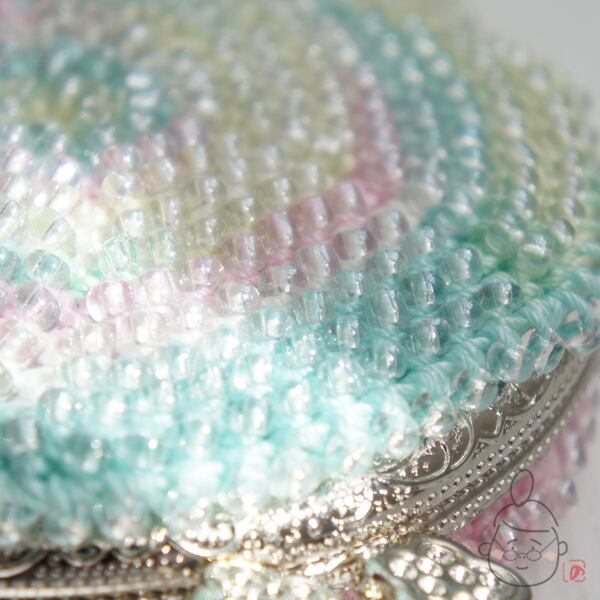 3mmのビーズをひとつぶづつ、全面に編み込みました。