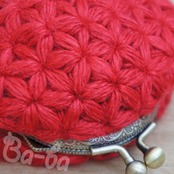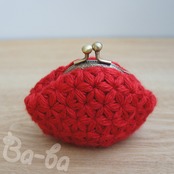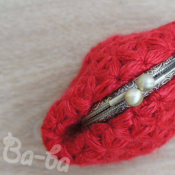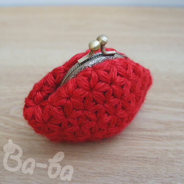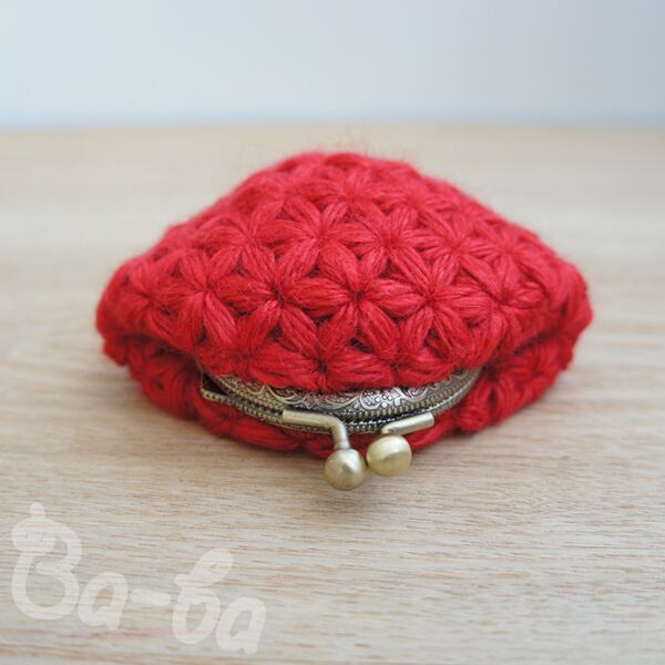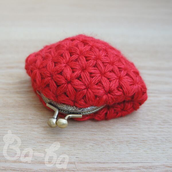 ばあば作♪ふわっとリフ編みminiがま口(red・C1315)
