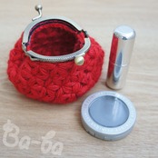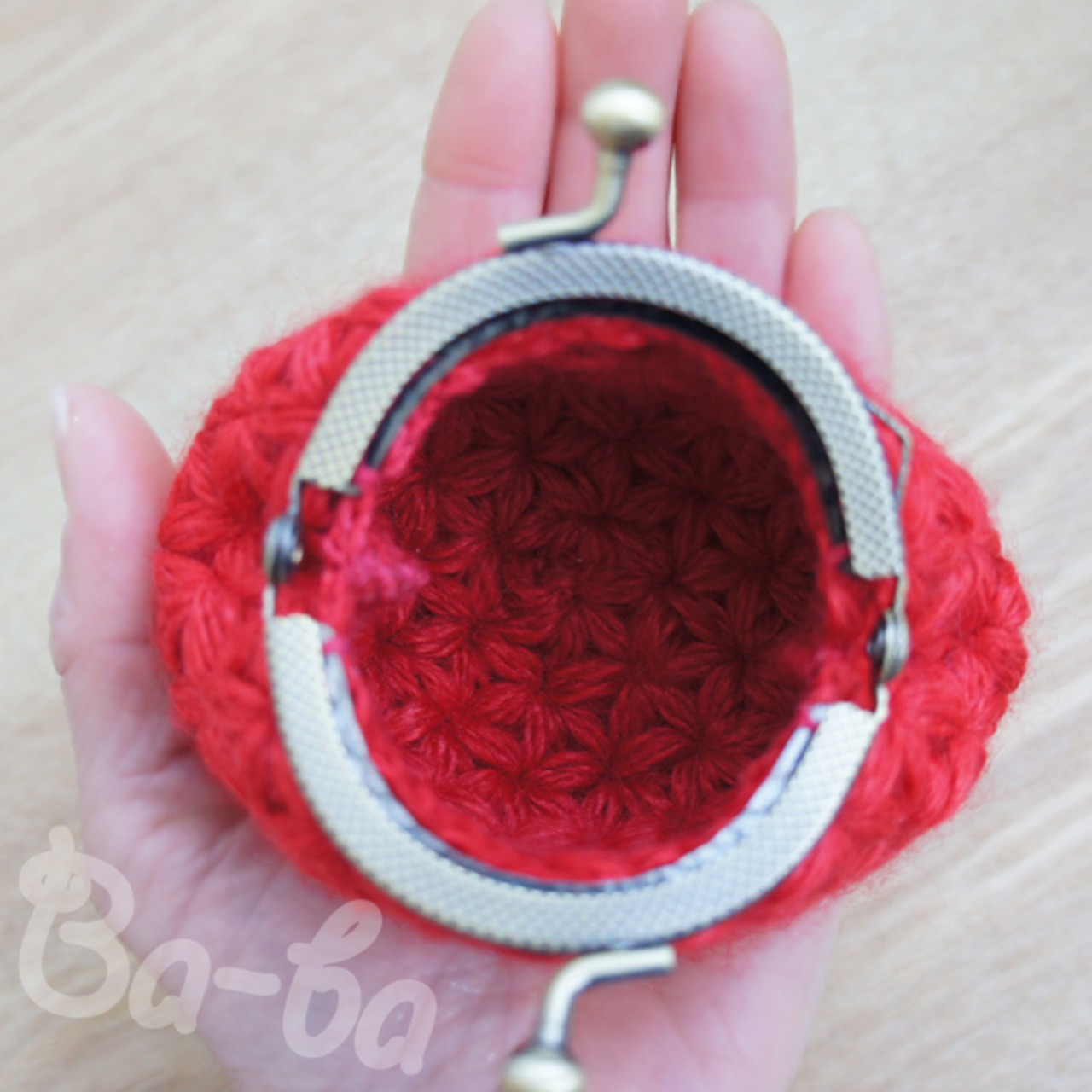 麻混紡、赤色の糸でふんわりリフ編みのがま口を作りました。