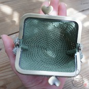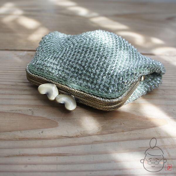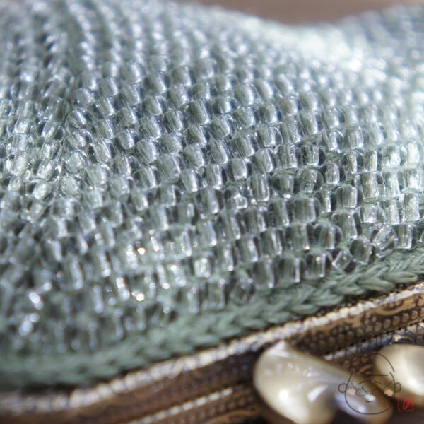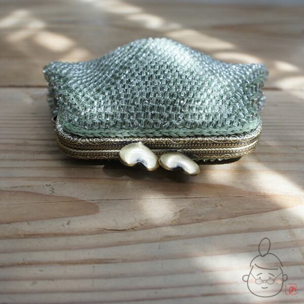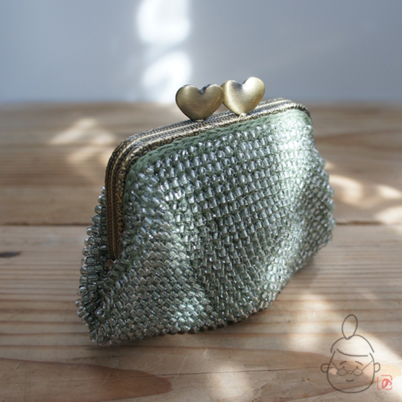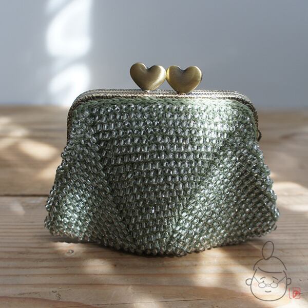 ばあば作♥総ガラスビーズのスクエアがま口 (matcha・1181)