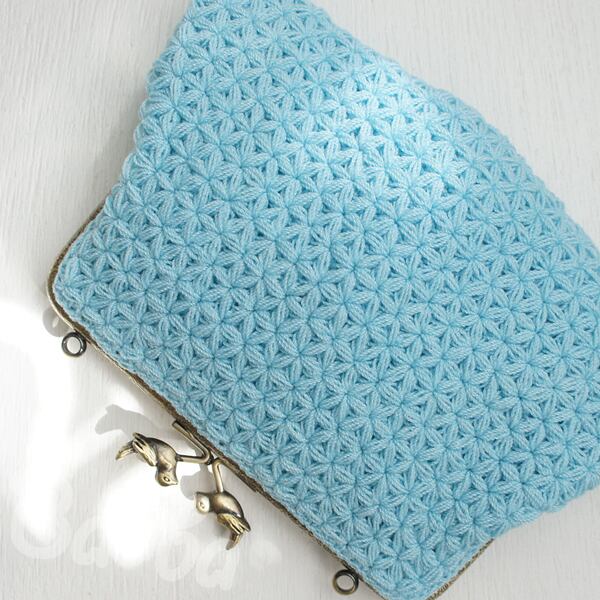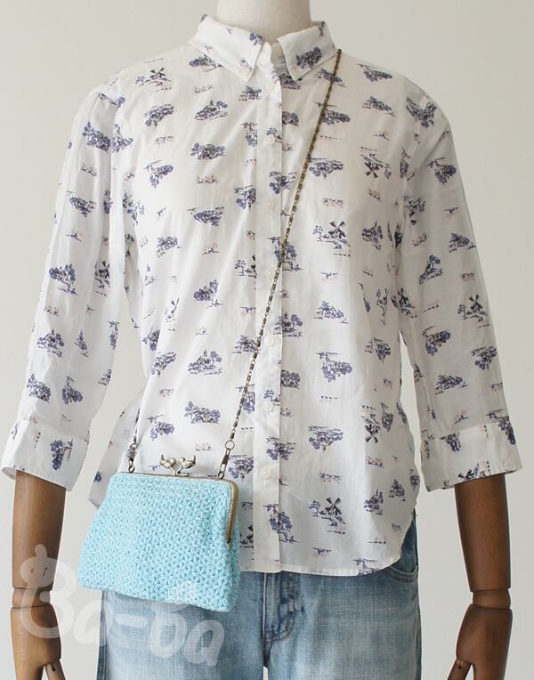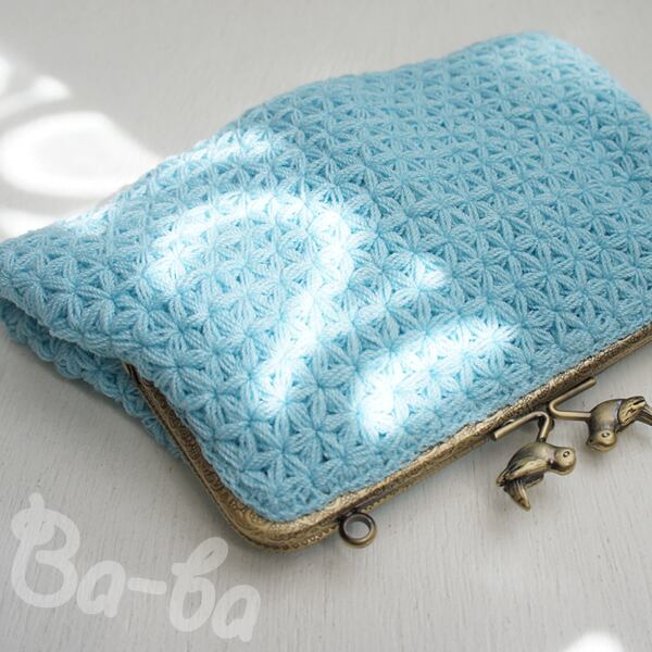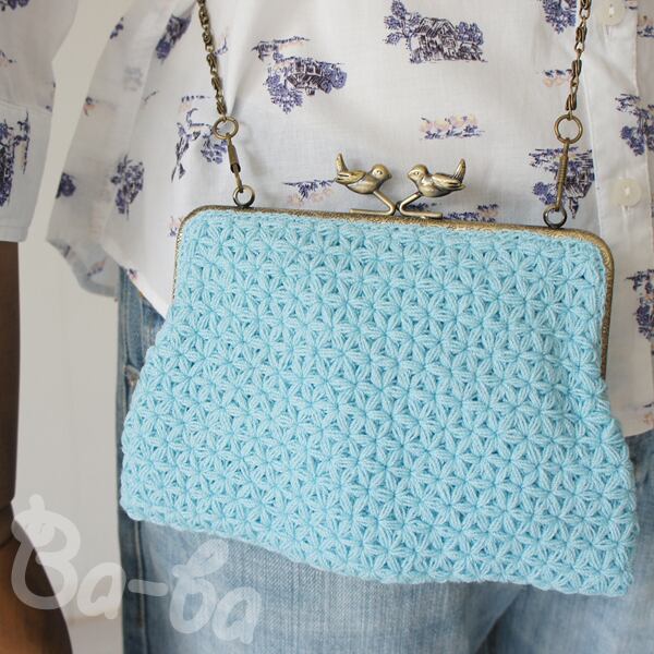 ばあば作・小鳥のリフ編みプチバッグ(そらいろ・C1318)