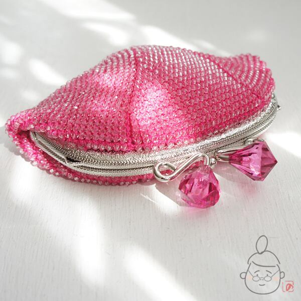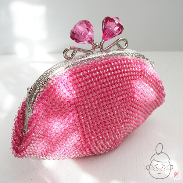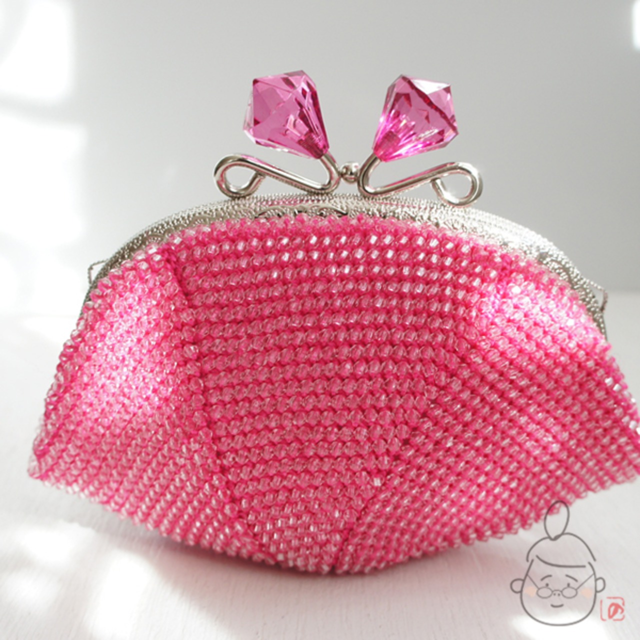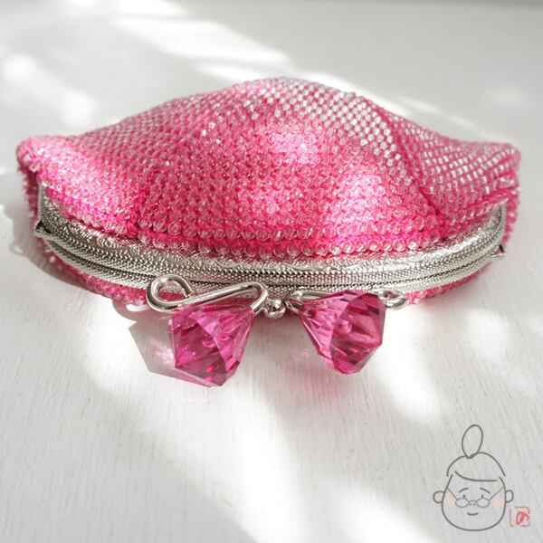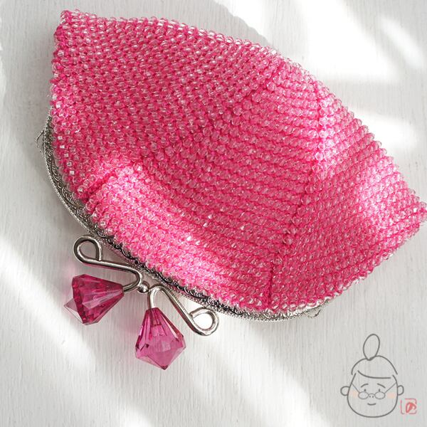 ばあば作♪アクリルビーズのさらに大きめがま口(deeppink・1168)