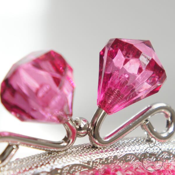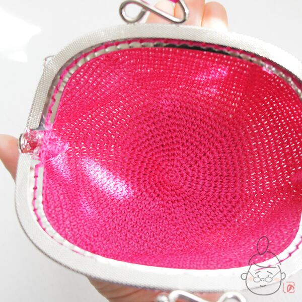 口金 : 柄入りシルバー×クリアピンク、12.5cm、くし形