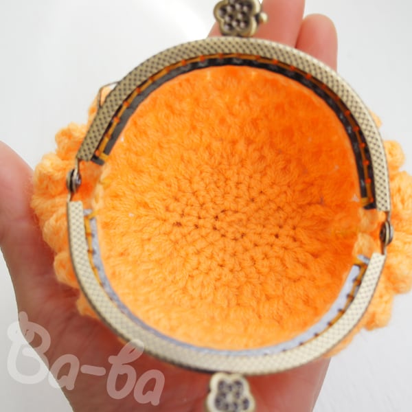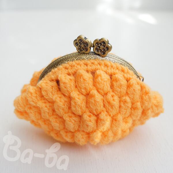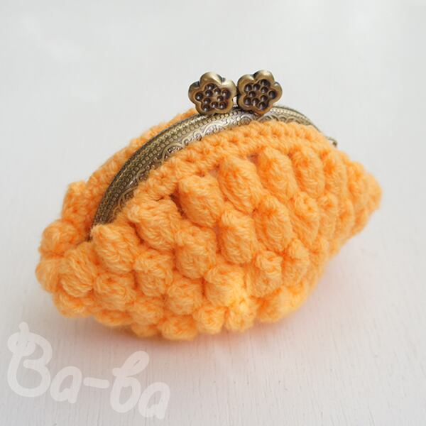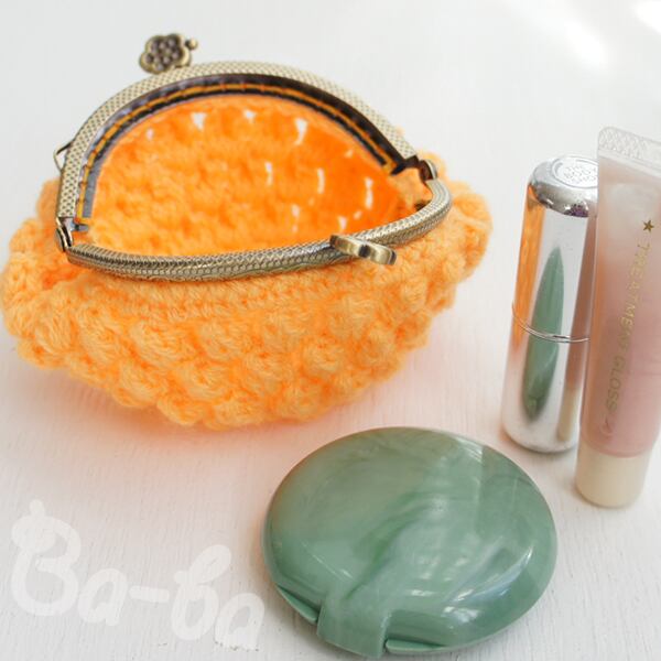ばあば作❤パプコーン編みのがま口(mikan・C1064)