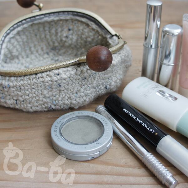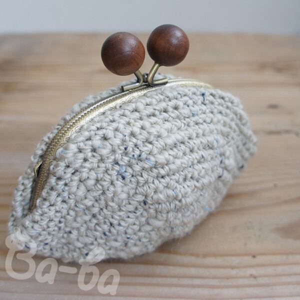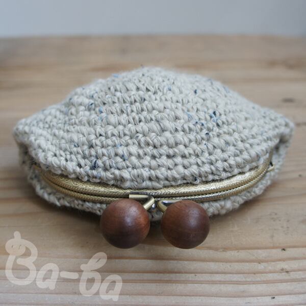 ばあば作♪さらに大きめwoodyがま口(naturalgray・C1112)