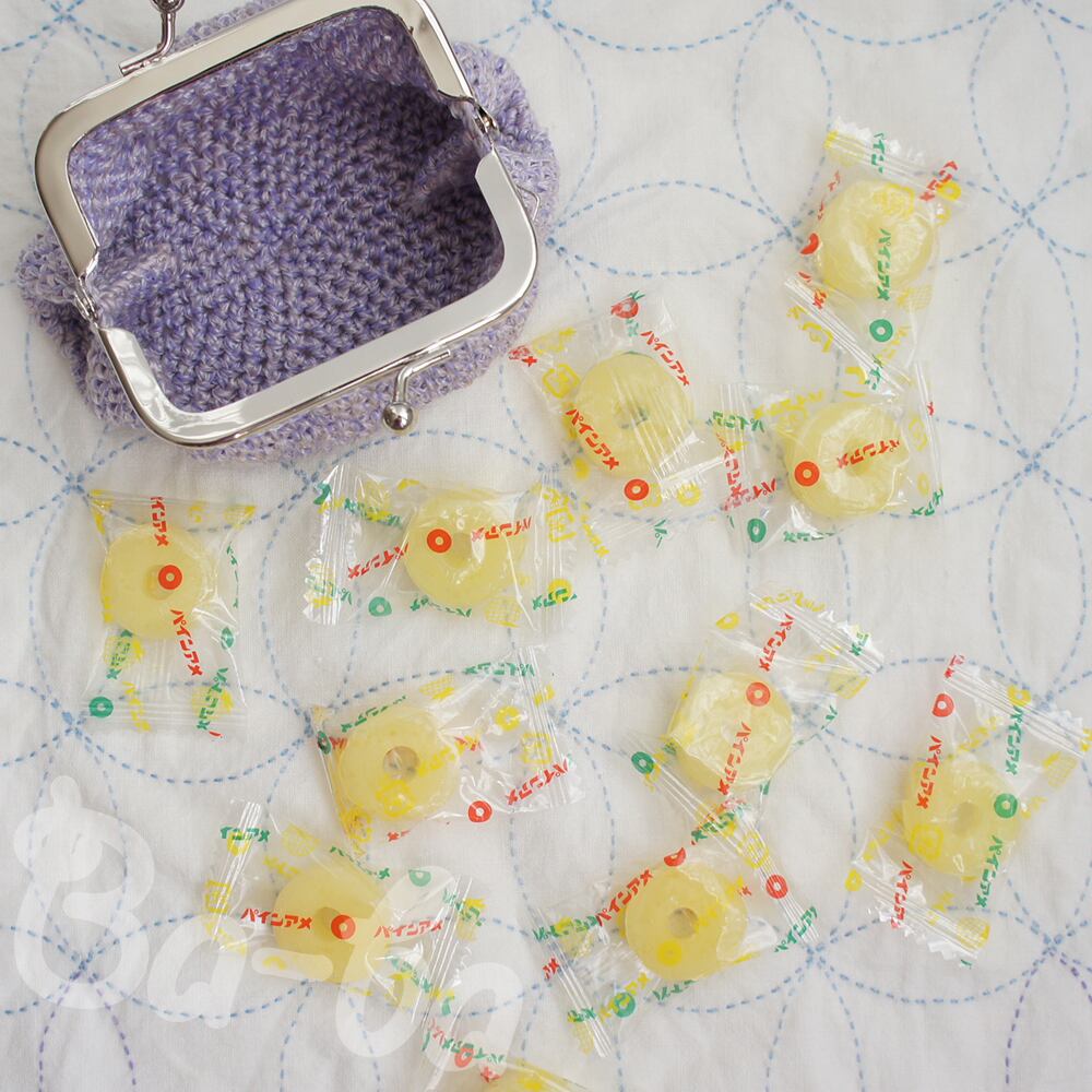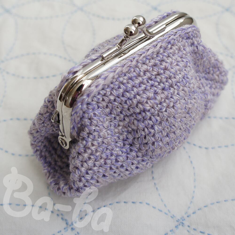 大きめの編み地に、8.5cmの口金をつけてみました。