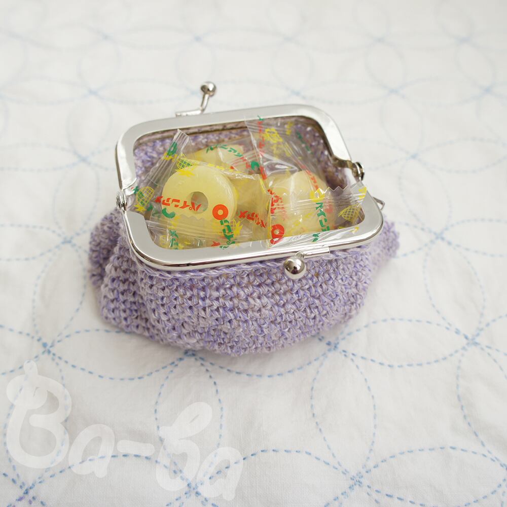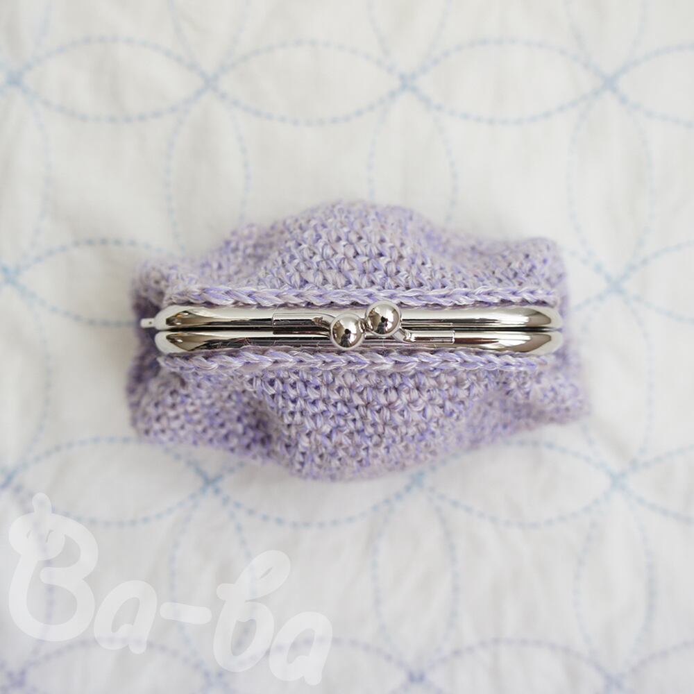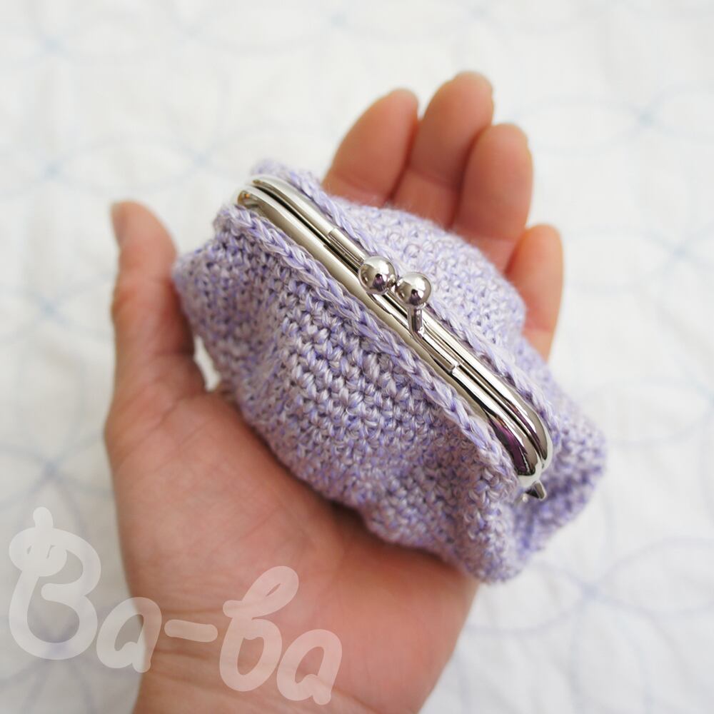 口金 : 銀色、8.5cm、角(縫いつけ用口金を使用し、編み地としっかり固定しています)