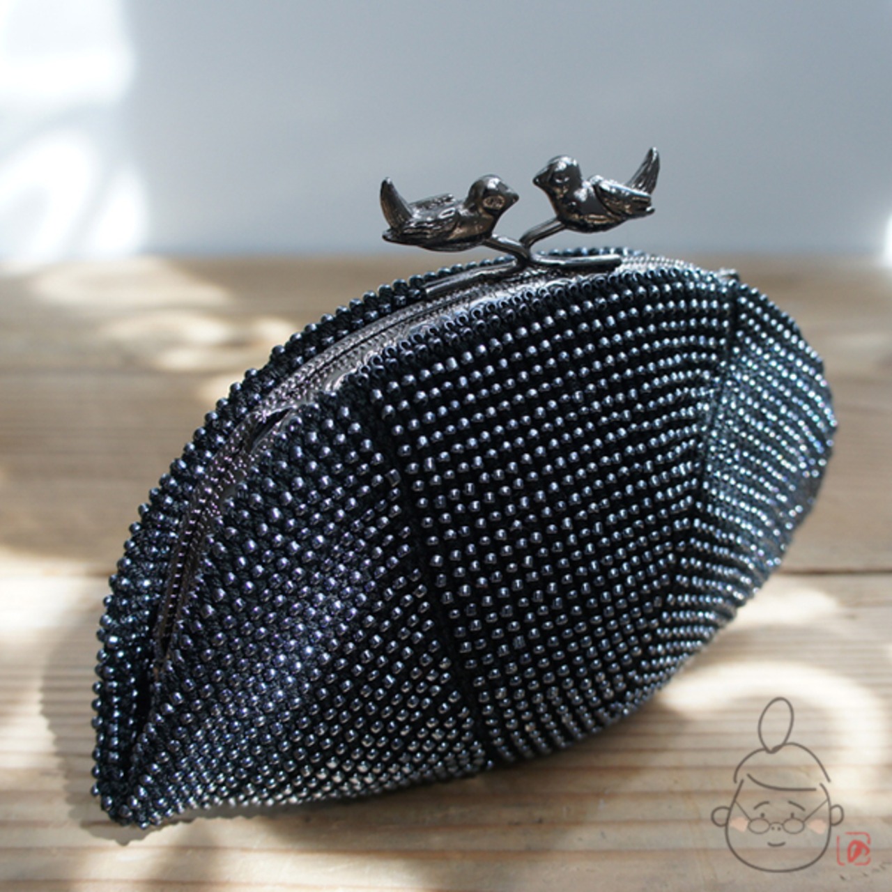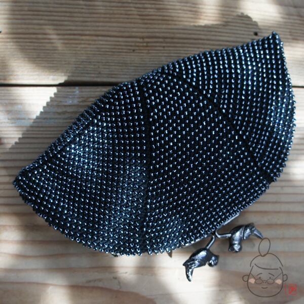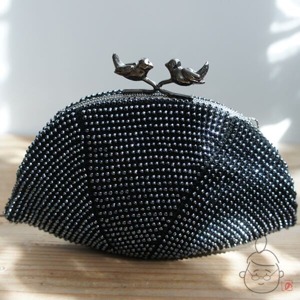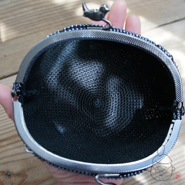口金 : メタルブラック×小鳥のつまみ、12.5cm、くし型