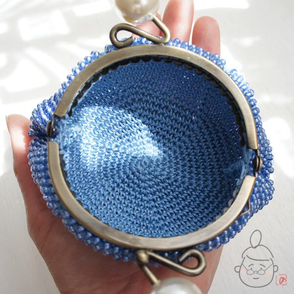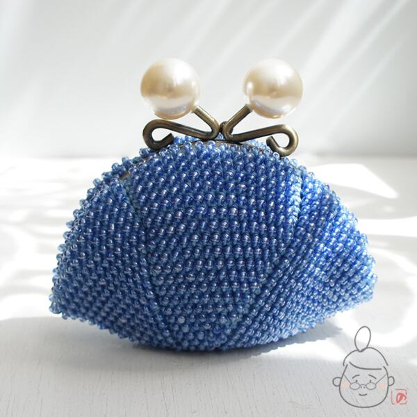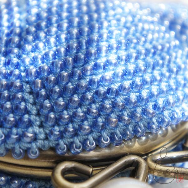 本体はガラスビーズを全面に一粒づつ編み込みました。