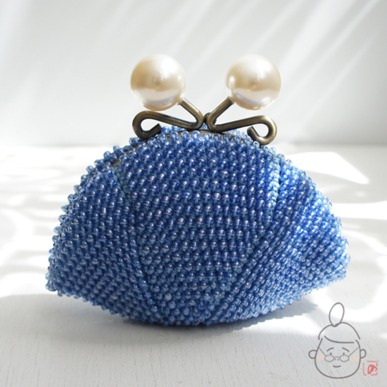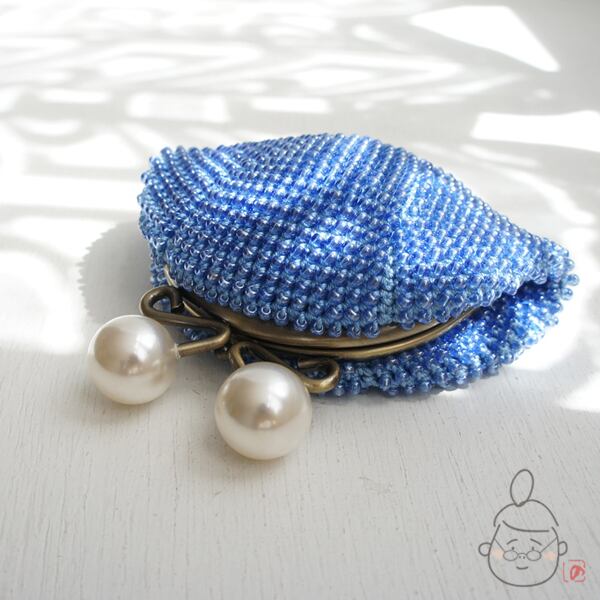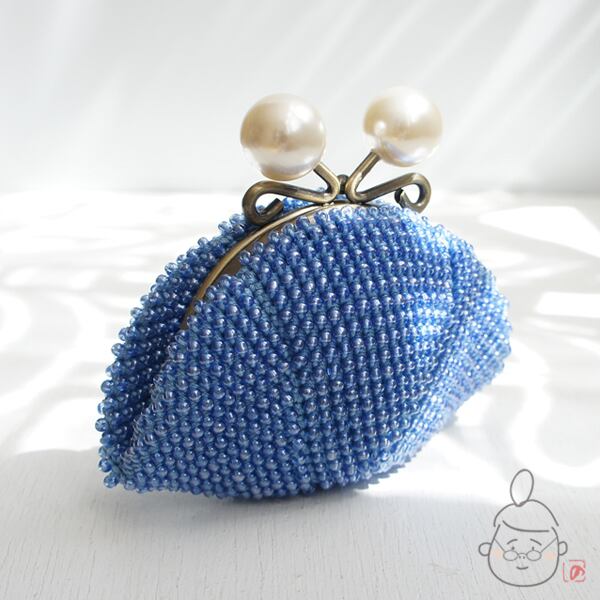 ばあば作☆☆総ガラスビーズの「大きめパール」がま口(あじさい・1219)