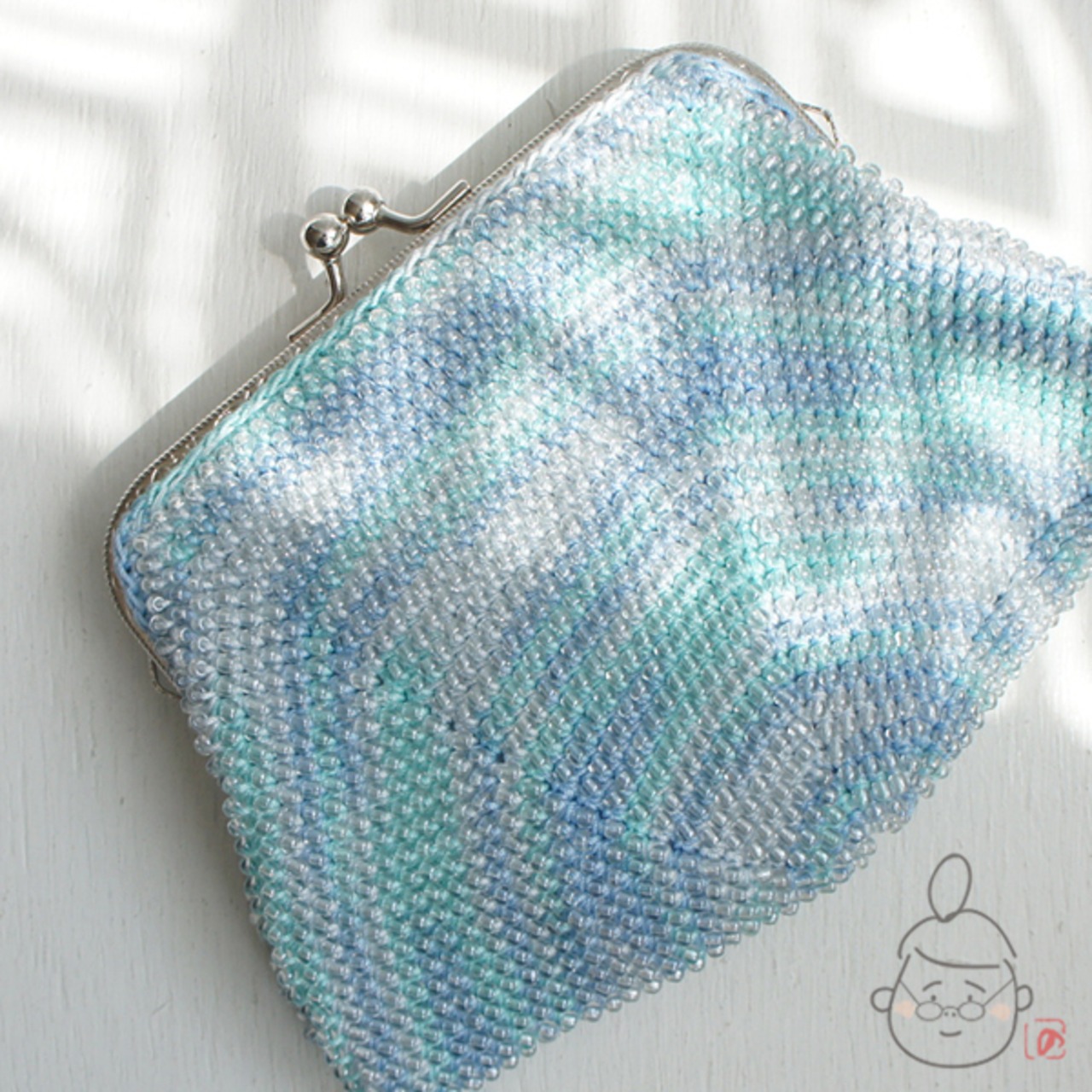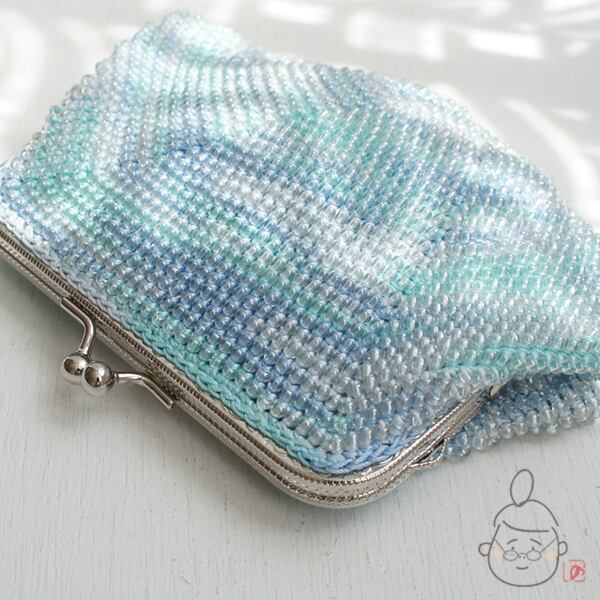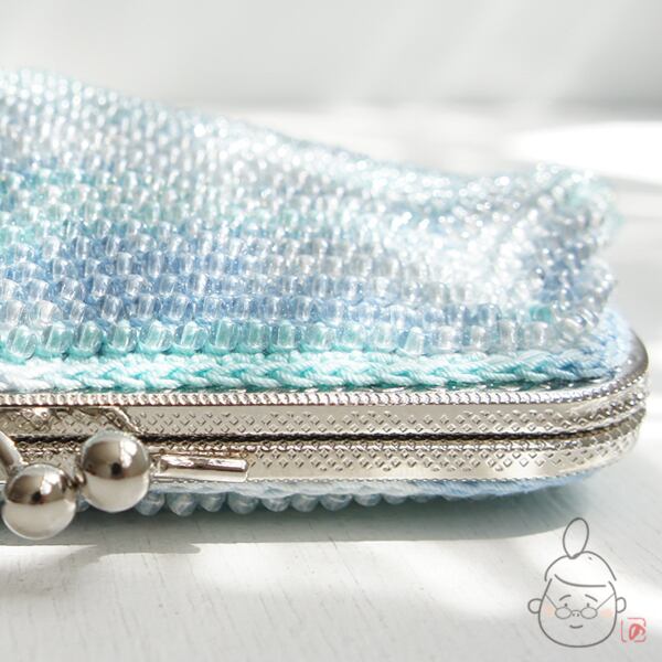 ばあば作☆☆さらに大きめ☆ガラスビーズのスクエアがま口 (seablue・1233)