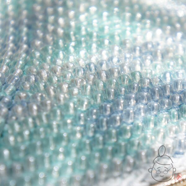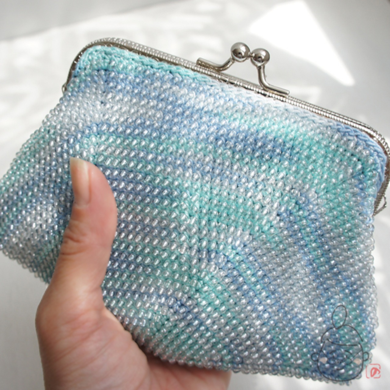 3mmのガラスビーズをひとつぶづつ、全面に編み込みました。