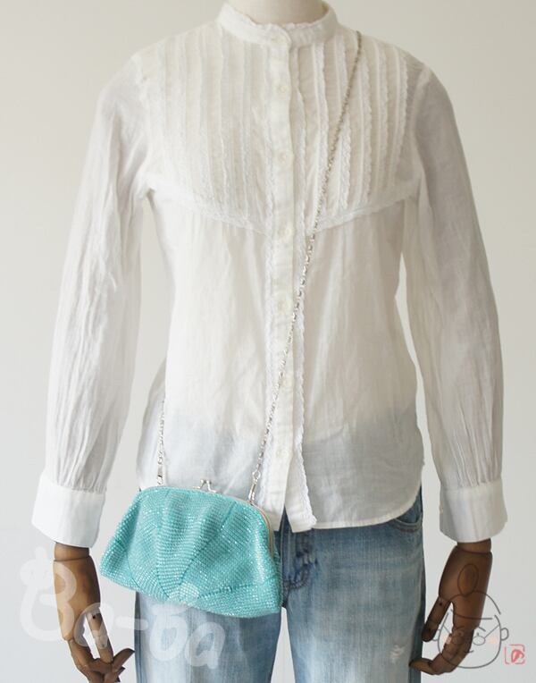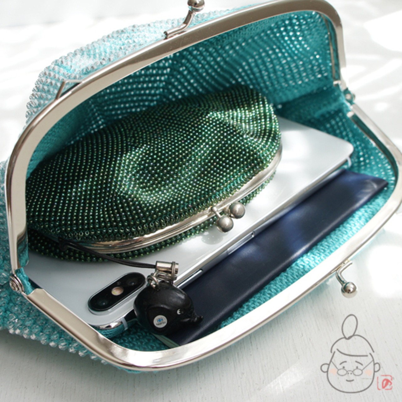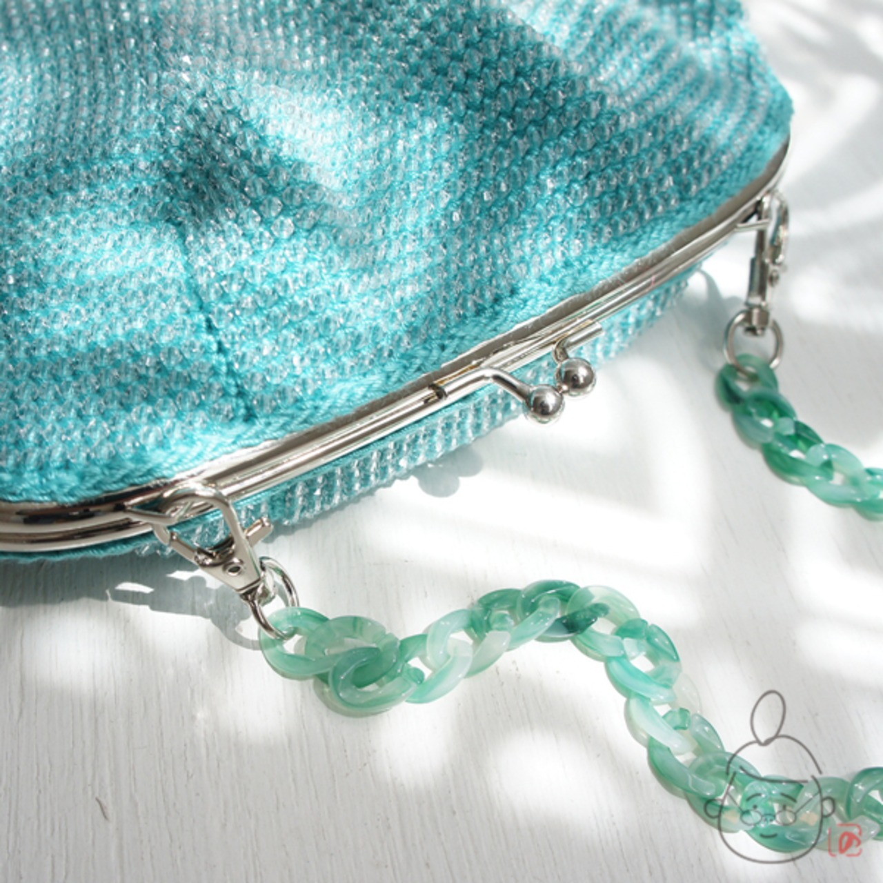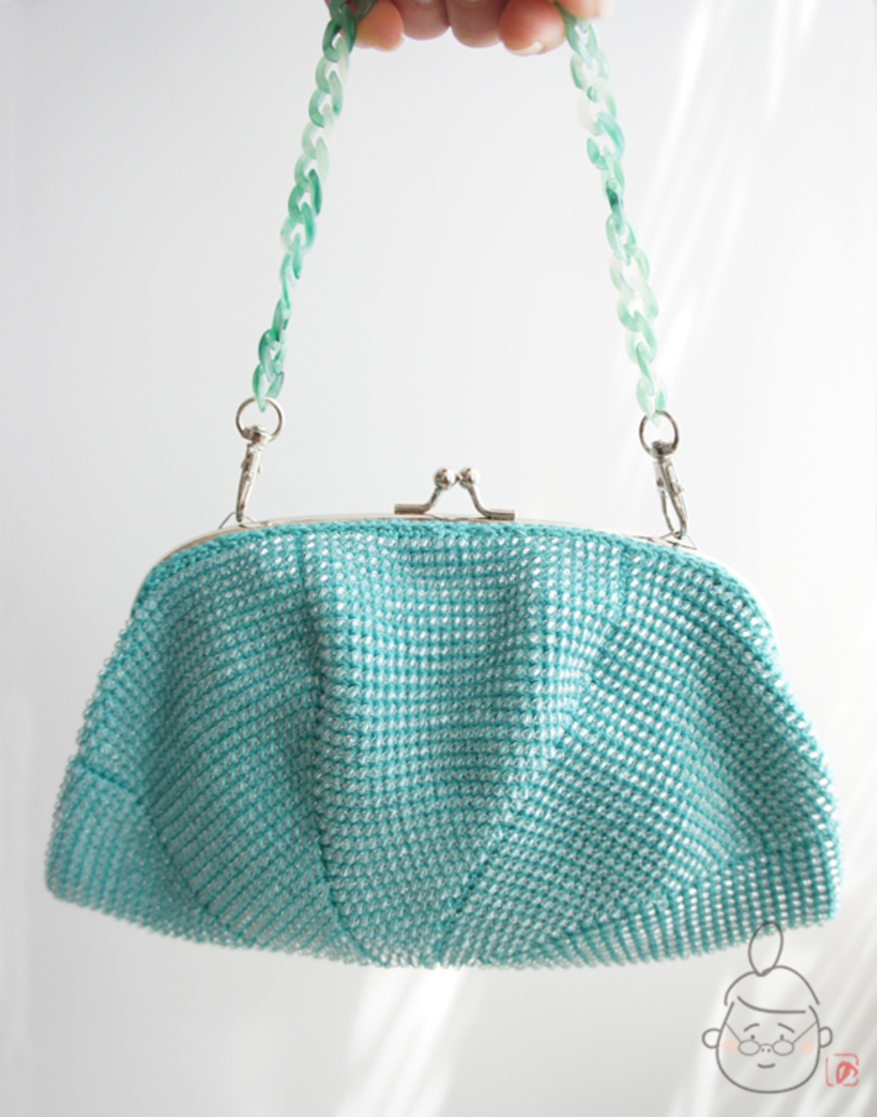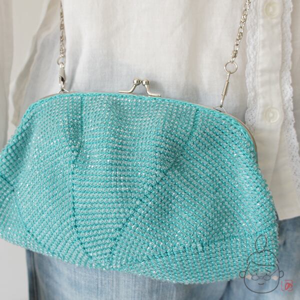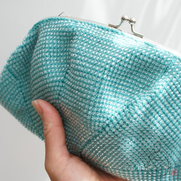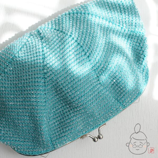 ばあば作☆キラキラ☆☆アクリルビーズのふんわりバッグ(seagreen・1212)