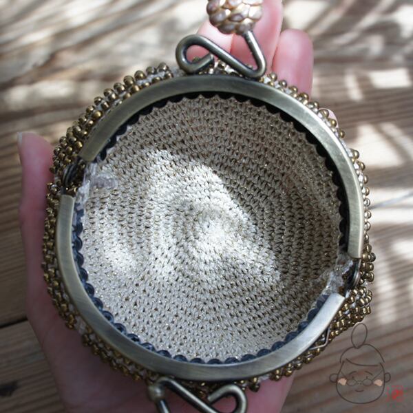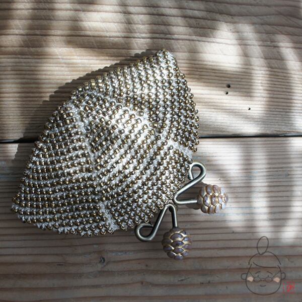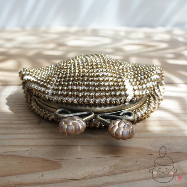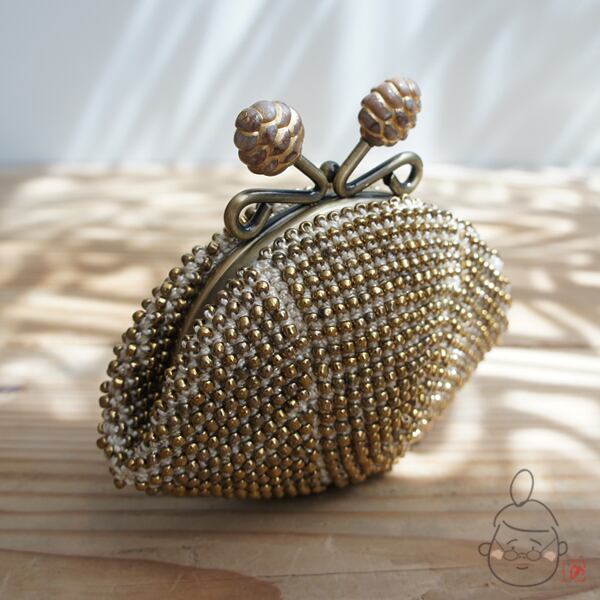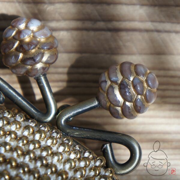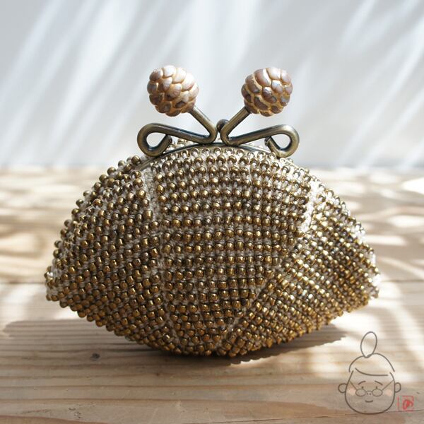 ばあば作☆☆総ガラスビーズのがま口(antiquegold・1223)