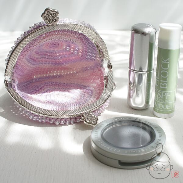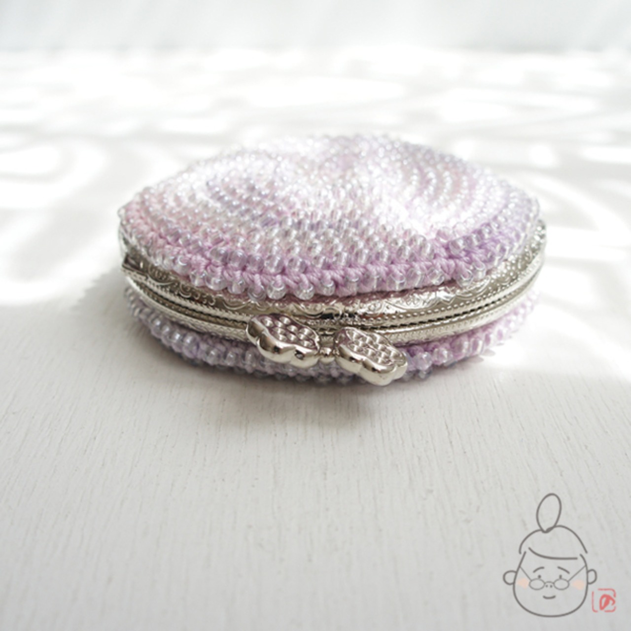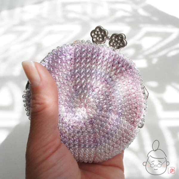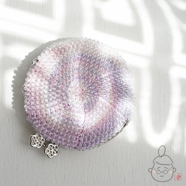 ばあば作♥ガラスビーズのまんまるがま口(lilac・1226)