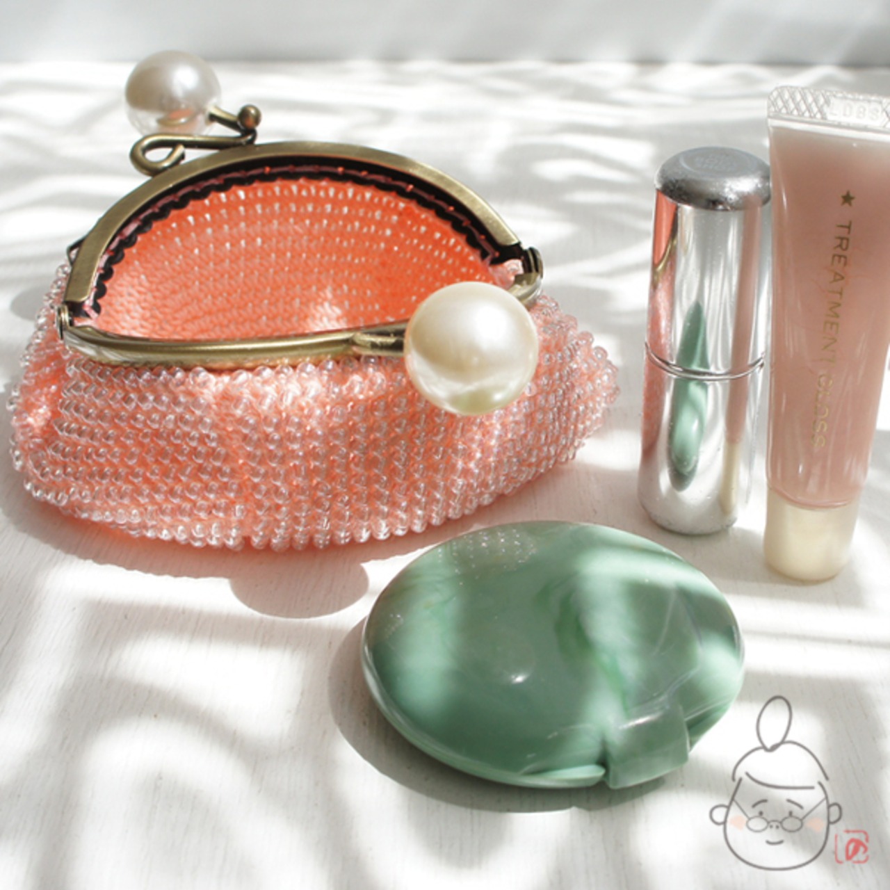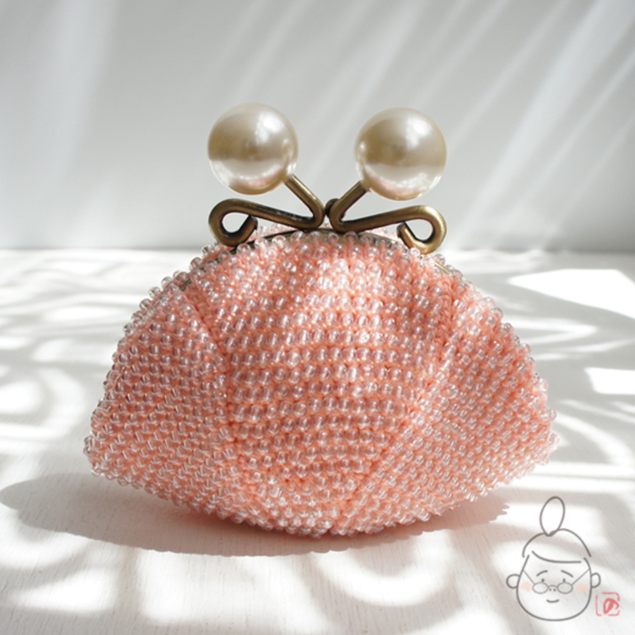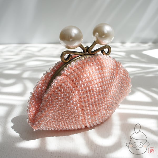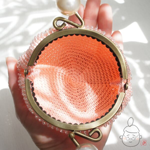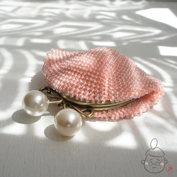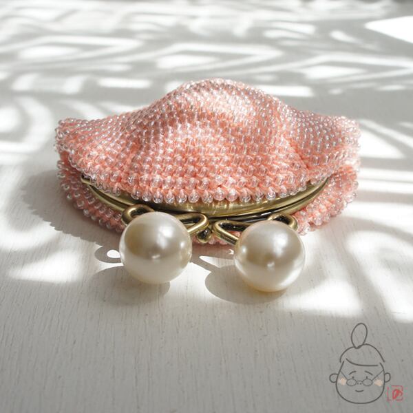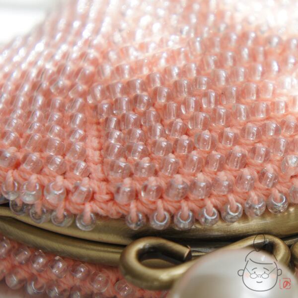 ばあば作☆☆総ガラスビーズの「大きめパール」がま口(shellpink・1240)
