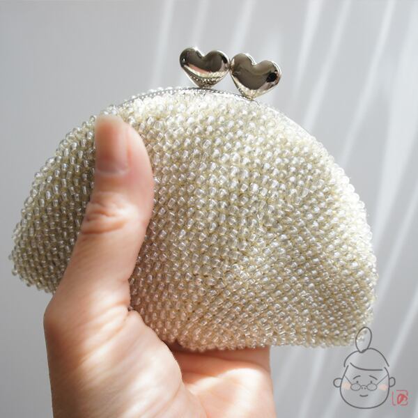 口金 : 10.5cm幅、シルバー×ハートつまみ