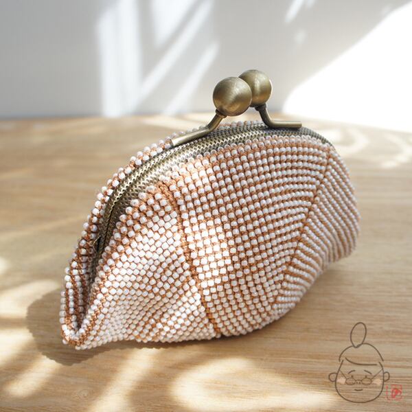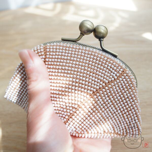 2mmのシードビーズを使用したこのがま口はお財布としてはもちろん、