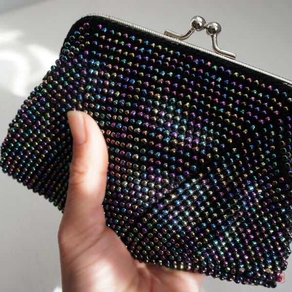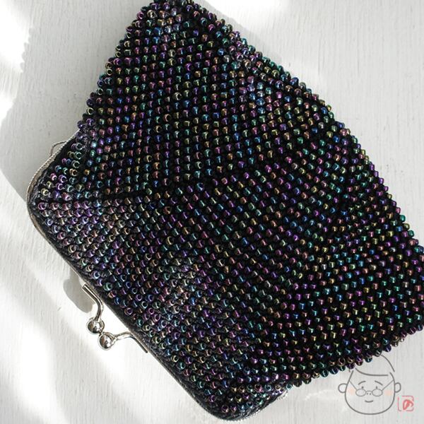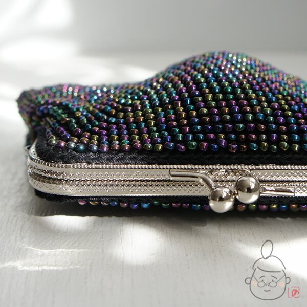 ばあば作☆☆さらに大きめ☆ガラスビーズのスクエアがま口 (espace・1165)