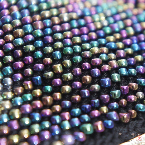 3mmのガラスビーズをひとつぶづつ、全面に編み込みました。