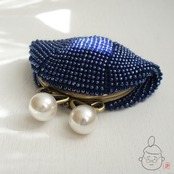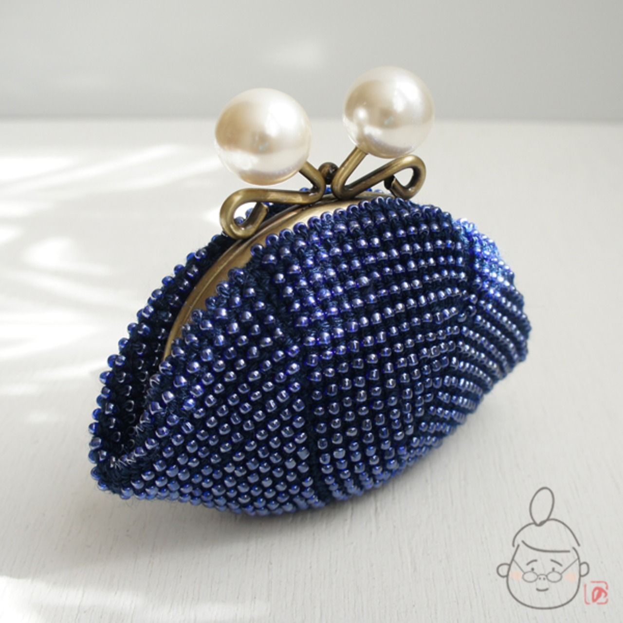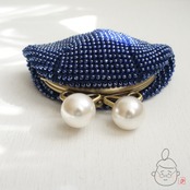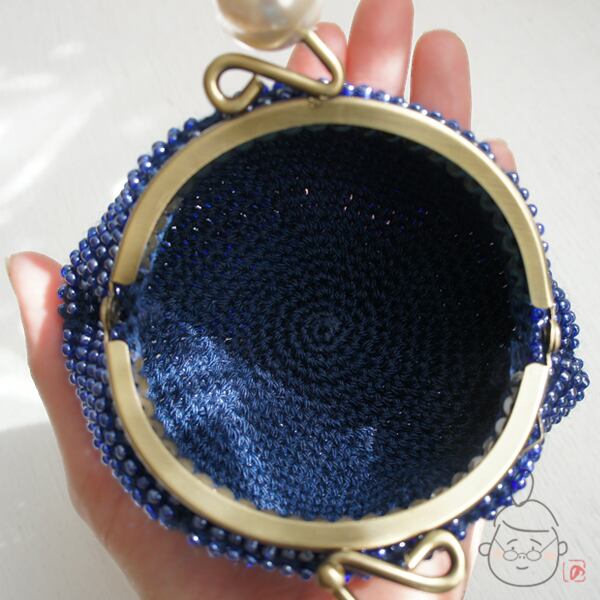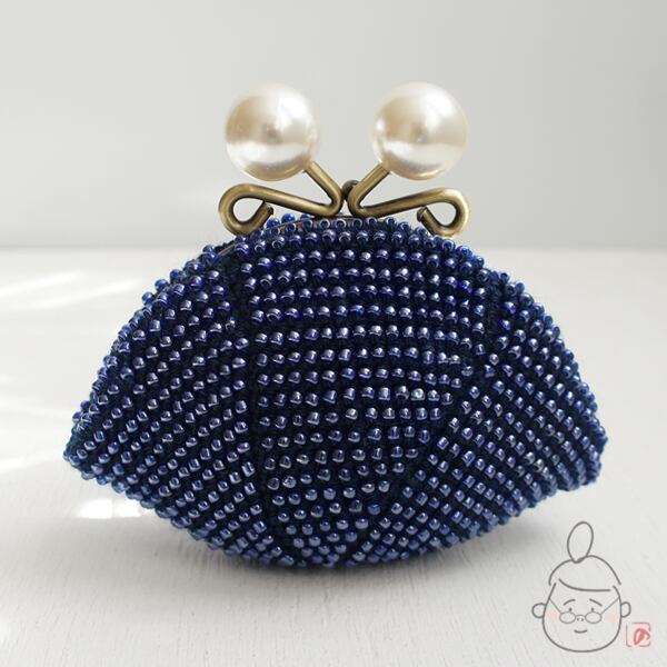ばあば作☆☆総ガラスビーズの「大きめパール」がま口(midnightblue・1248)