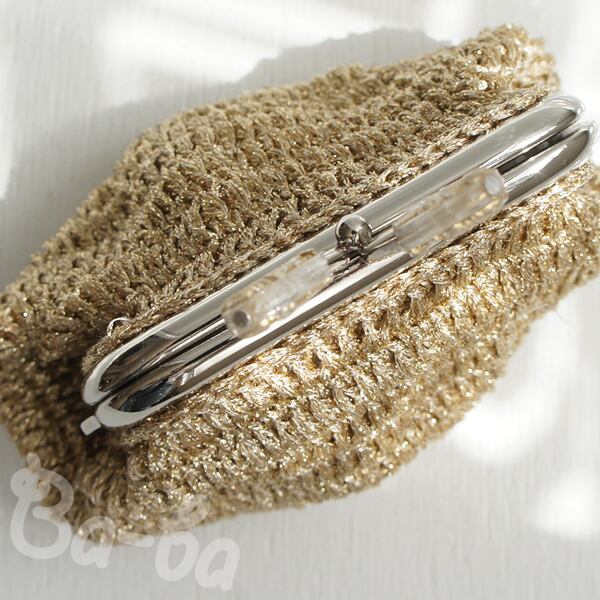 つまみと同じトーンの金色糸をソフトに編み上げました。