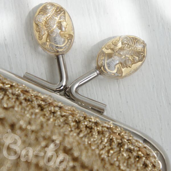 フランスアンティークのようなクリア×ゴールドのカメオ風ビーズをつまみにしました。