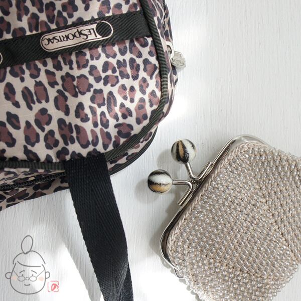 口金 : シルバー×レオパード柄つまみ、8.5cm、スクエア