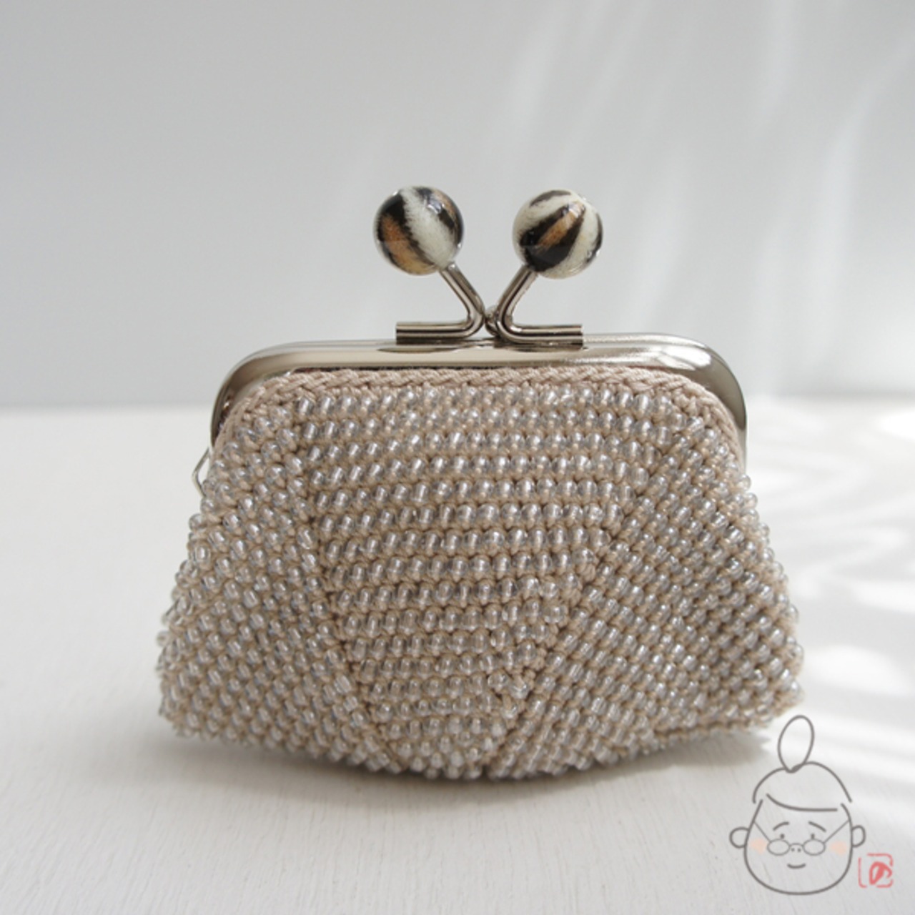 ばあば作♡総ガラスビーズのがま口(pardus・1215)