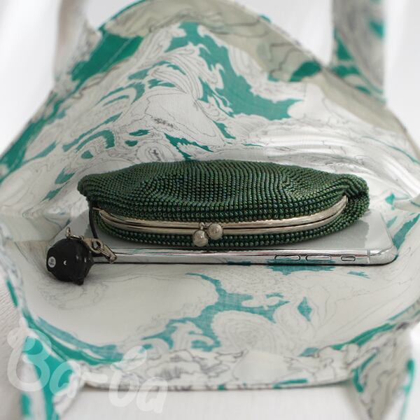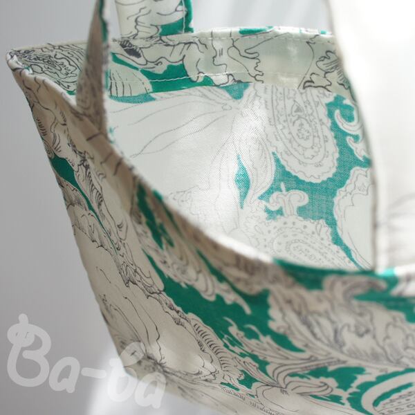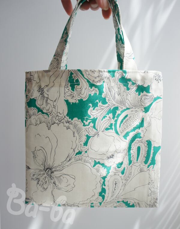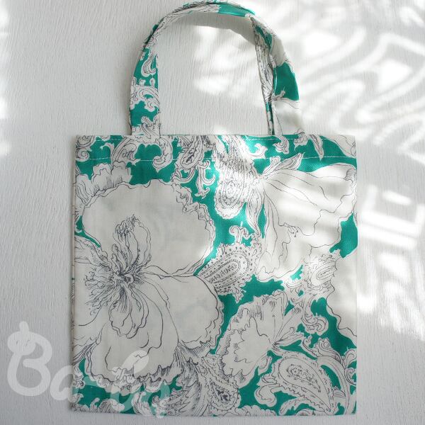送料無料です♪ ばあば作、レトロな手さげバッグ(bluegreen・RB23)