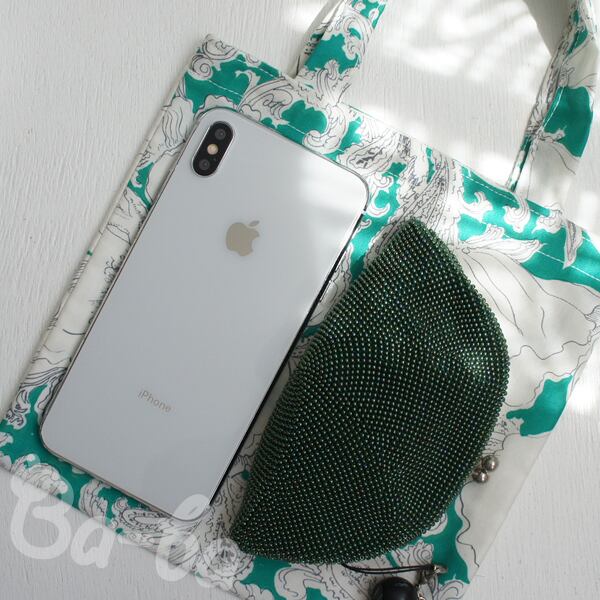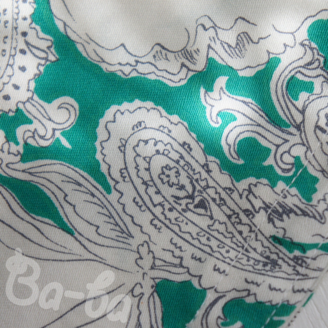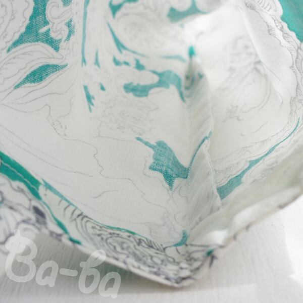 素材 : コットン布(緑色地に白花、ペーズリー柄)