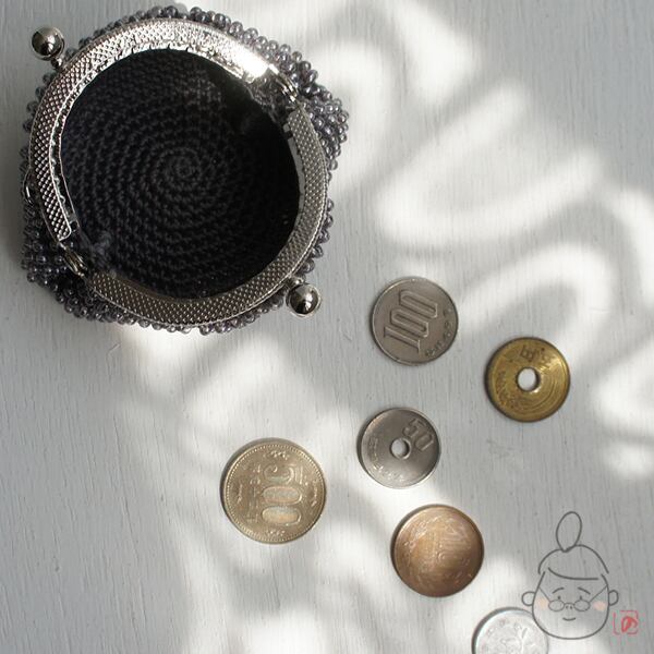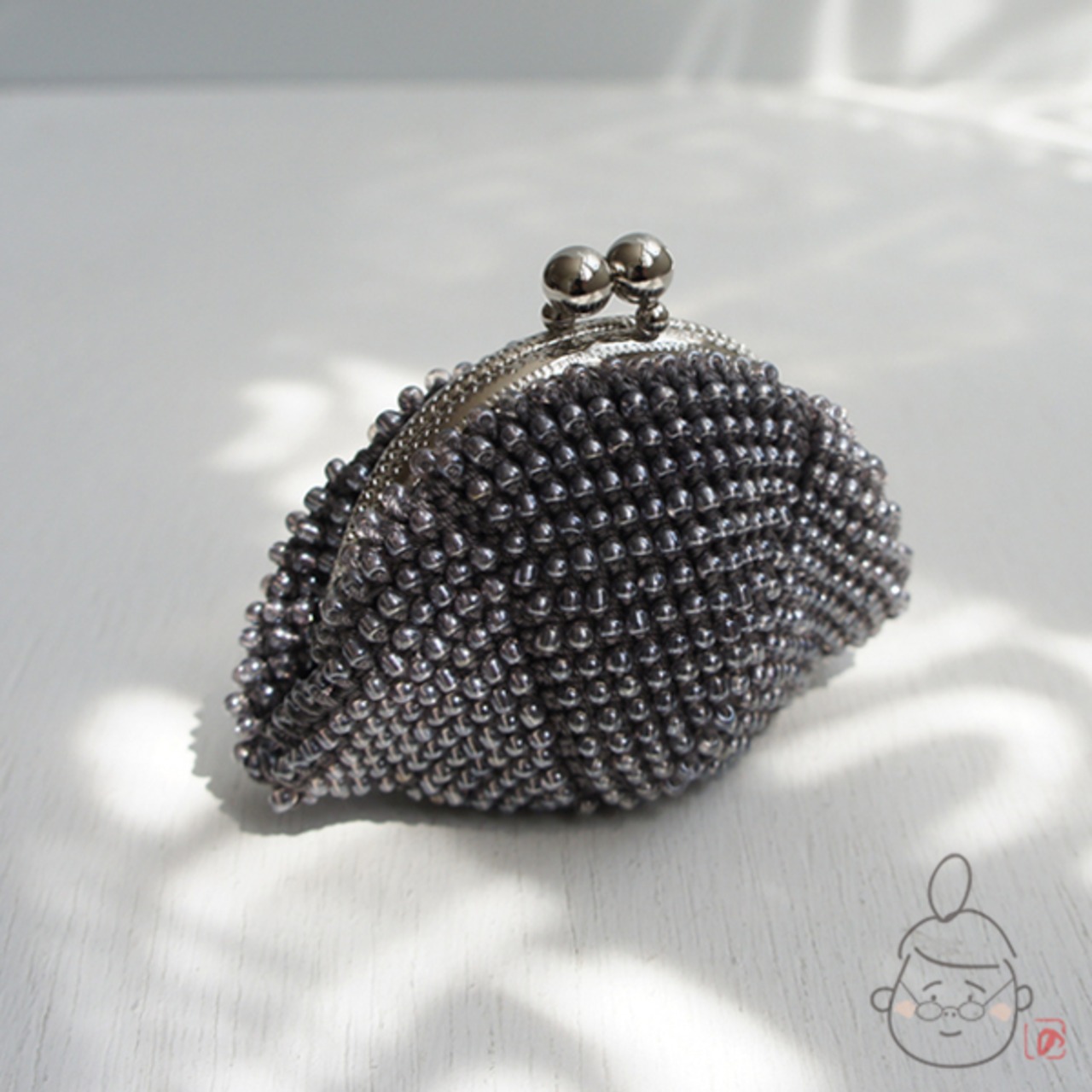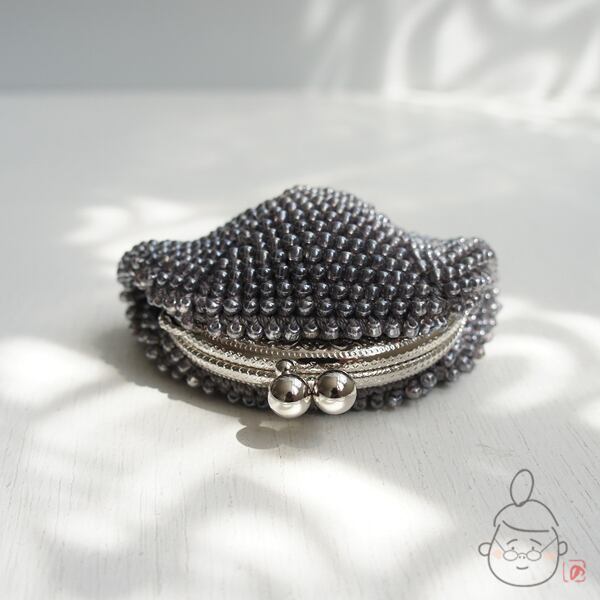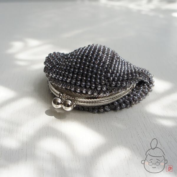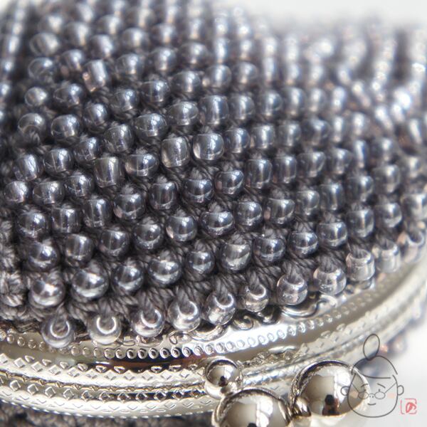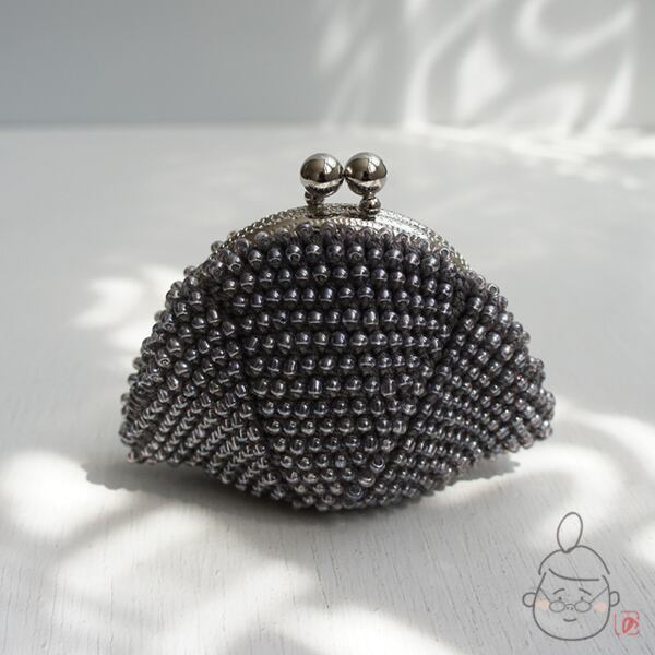 キラキラの3mmガラスビーズをひとつぶづつ編み込んだ、手のひらサイズのがま口です。