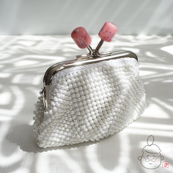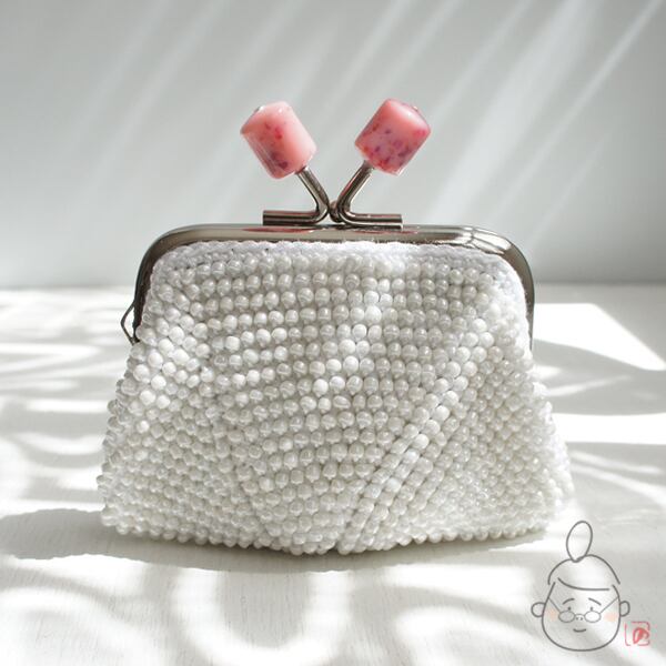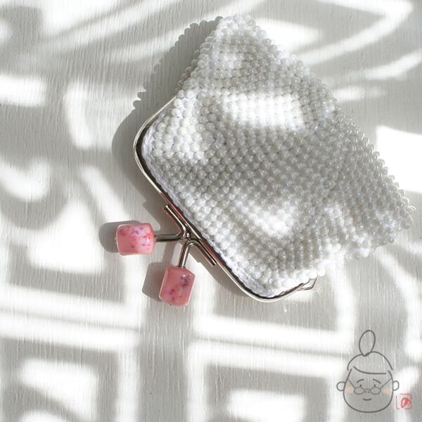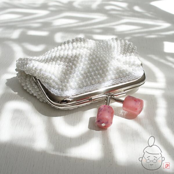 ばあば作☆☆総ガラスビーズのスクエアがま口(creamypink・1239)