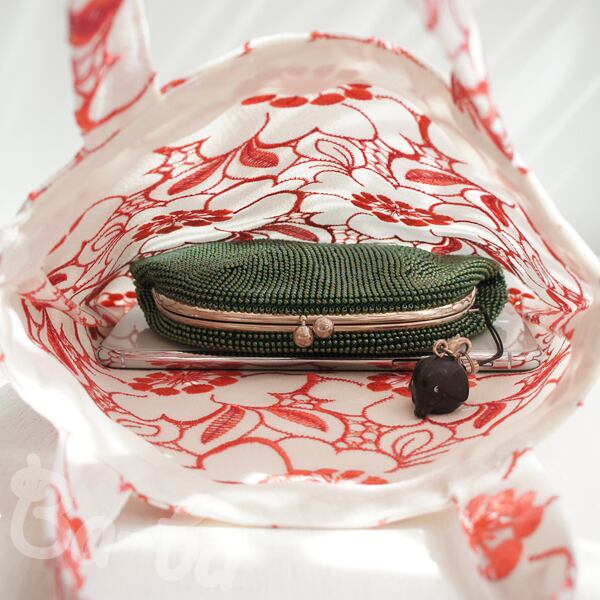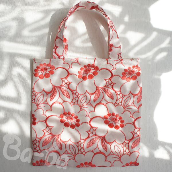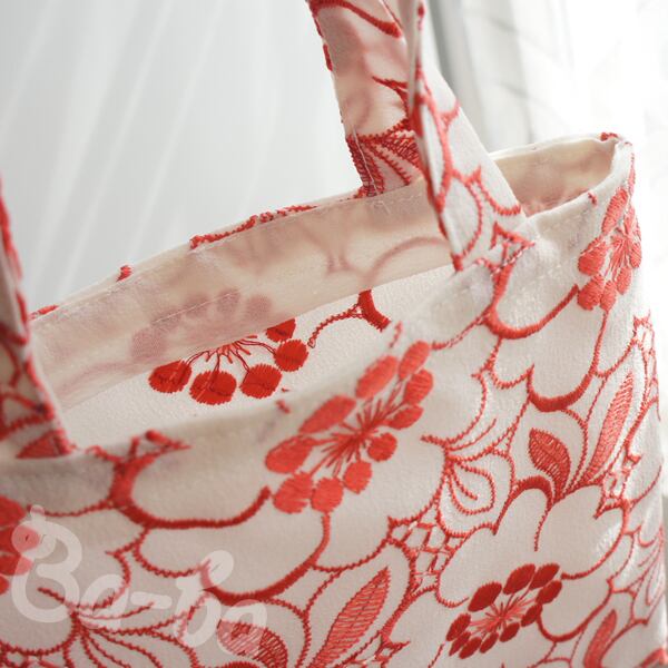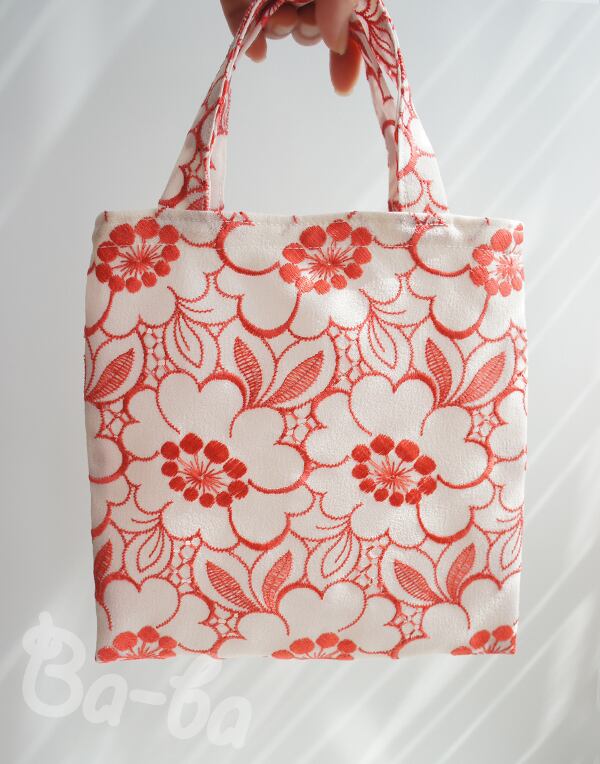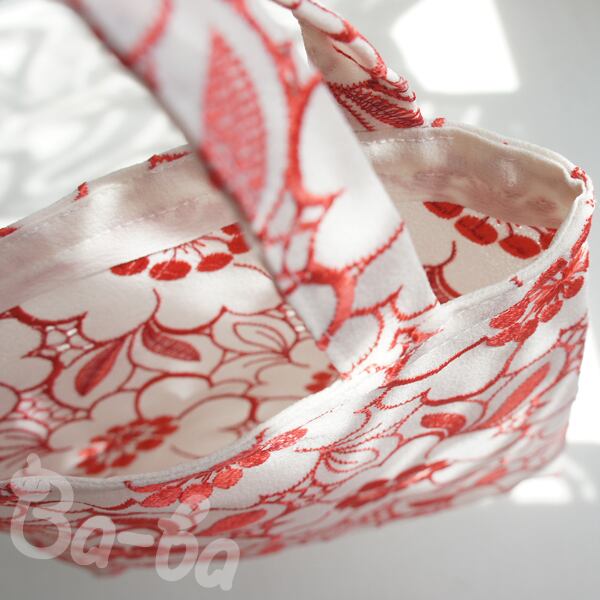 送料無料です♪ ばあば作、レトロな手さげバッグ(朱・RB28)