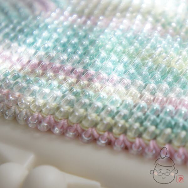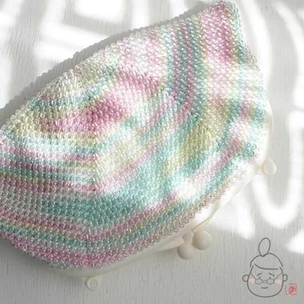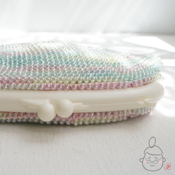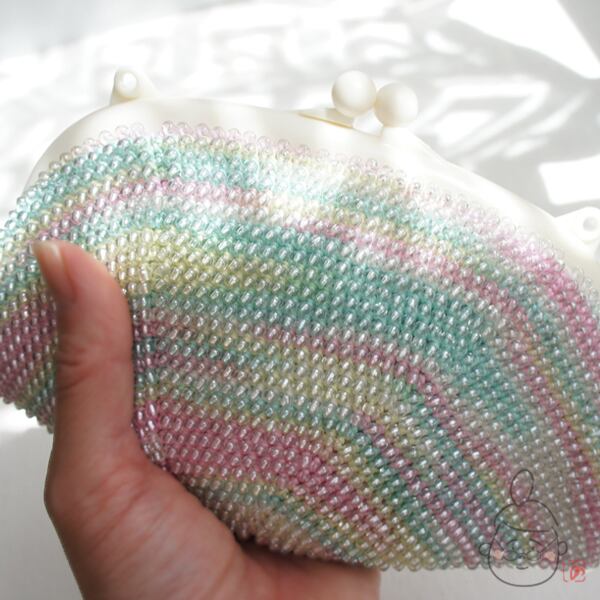 全面にガラスビーズを編み込んでプチバッグを制作しました。
