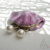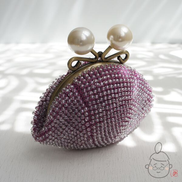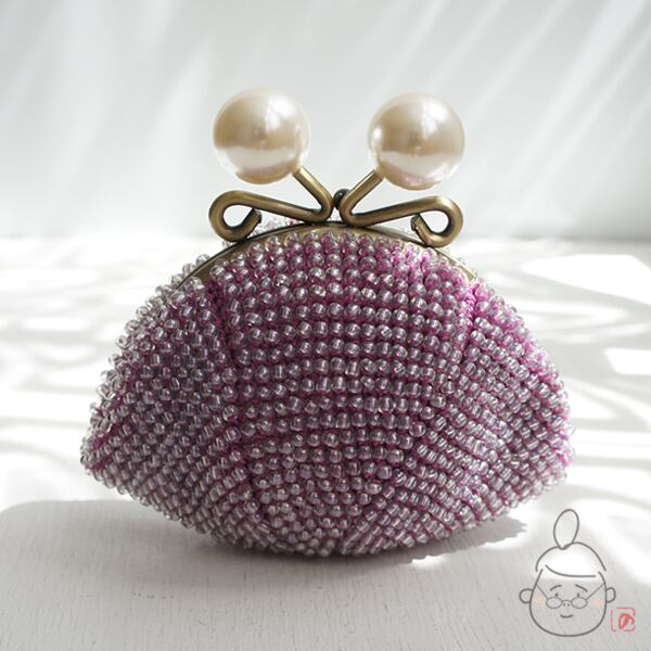 ばあば作☆☆総ガラスビーズの「大きめパール」がま口(ぶどう・1241)