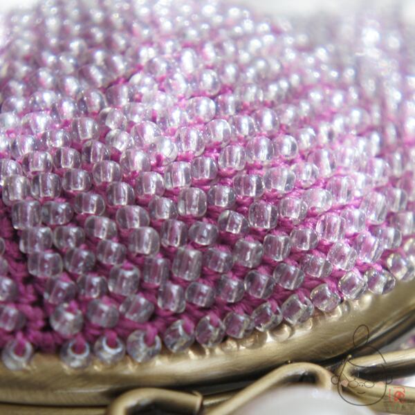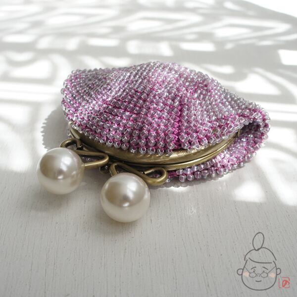 本体はガラスビーズを全面に一粒づつ編み込みました。
