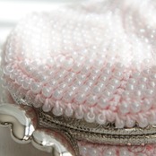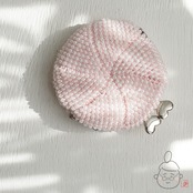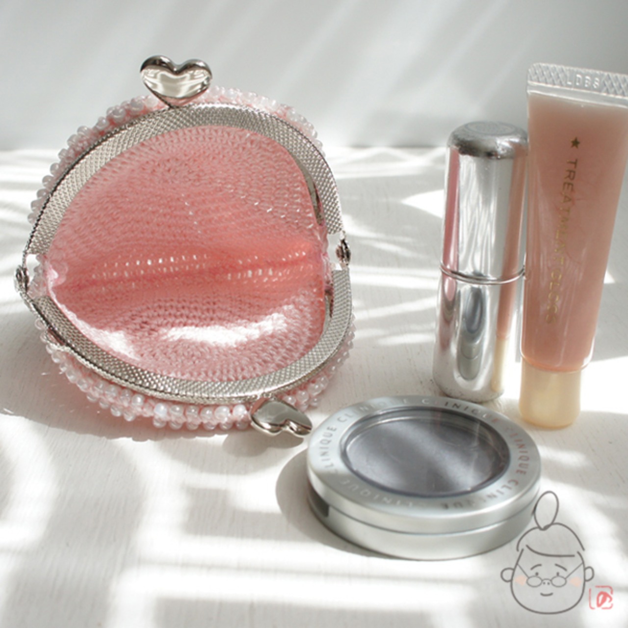 ピンク×白の編み地に、ハート型つまみの口金を組み合わせてかわいさUP♡