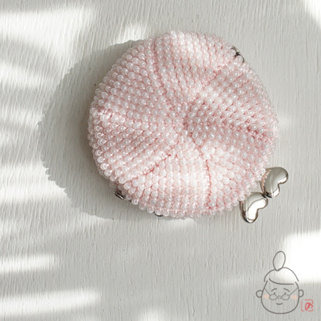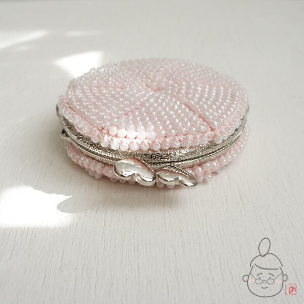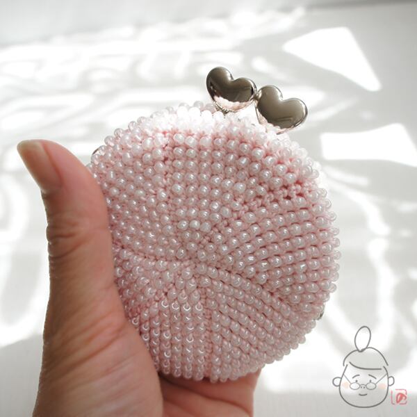 ばあば作♥ガラスビーズのまんまるがま口(sugarpink・1237)