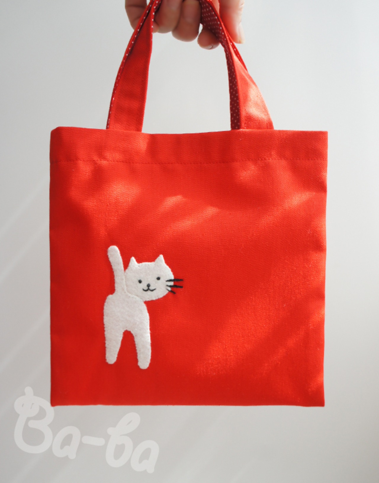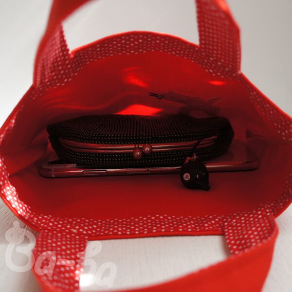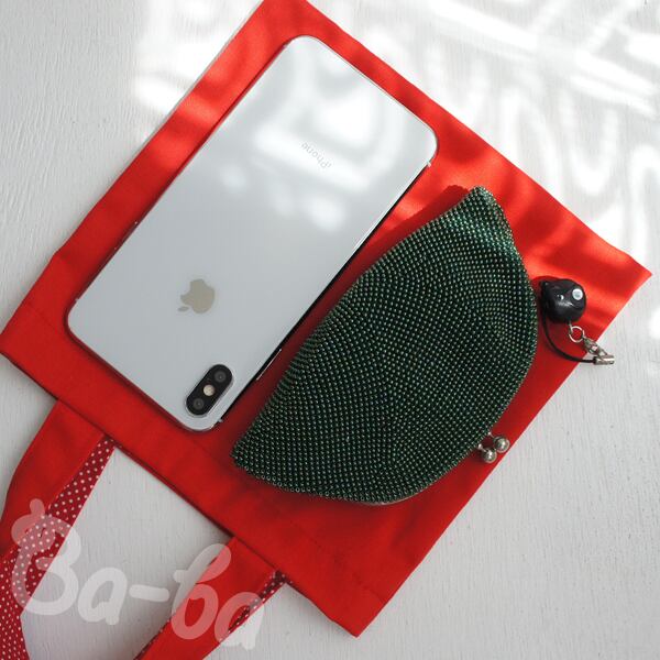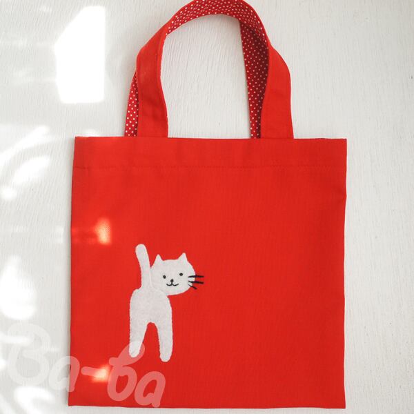 送料無料♪ ばあば作・ふりかえるシロの手さげバッグ(赤・RB32)
