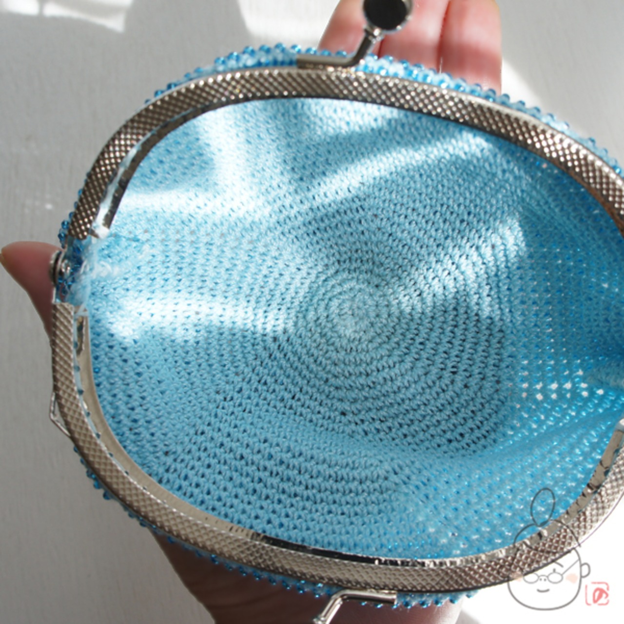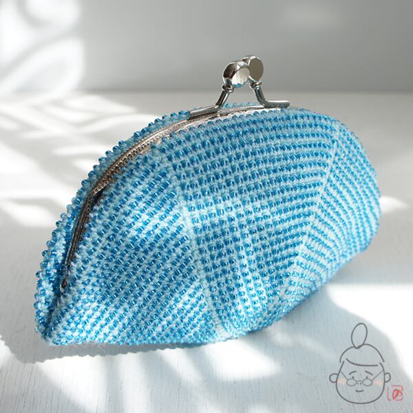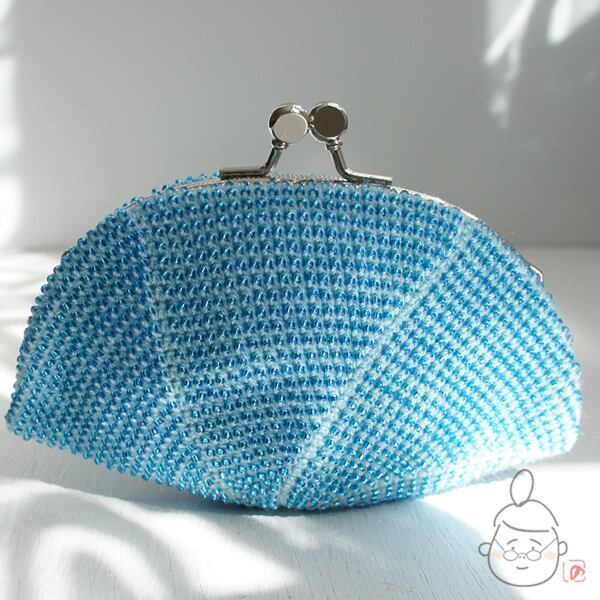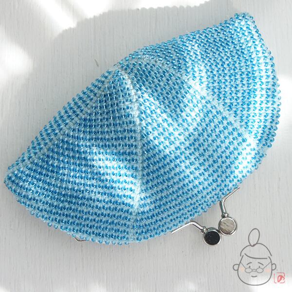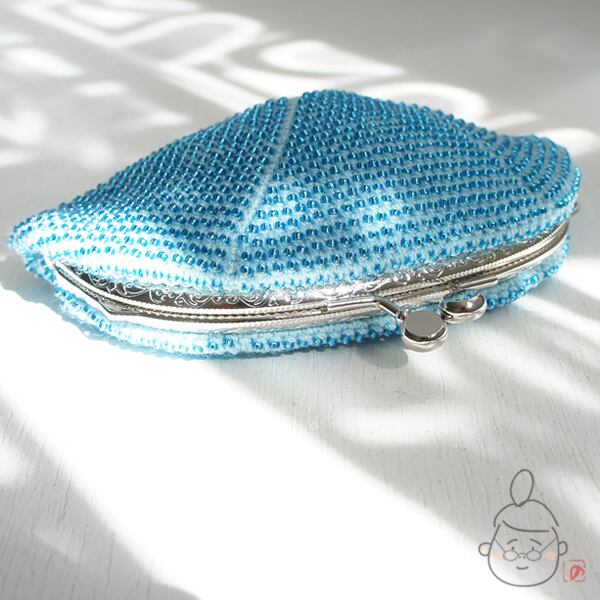ばあば作☆シードビーズのさらに大きめがま口 (みずいろ・1136)