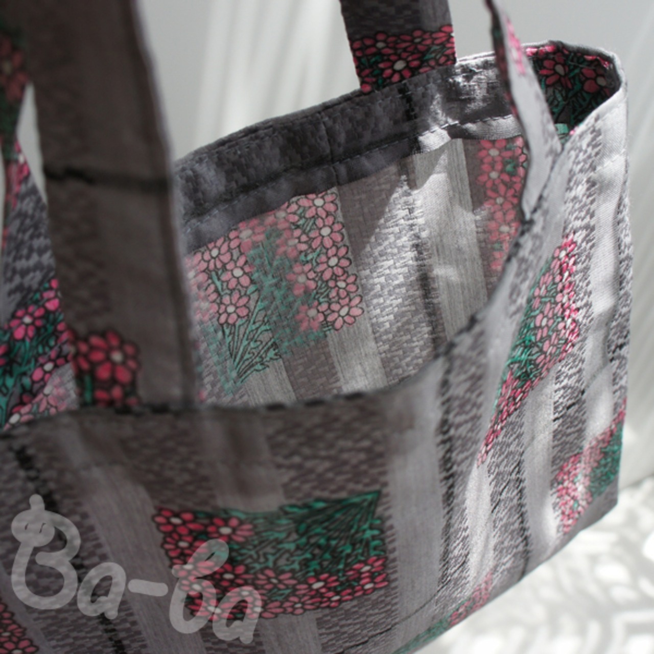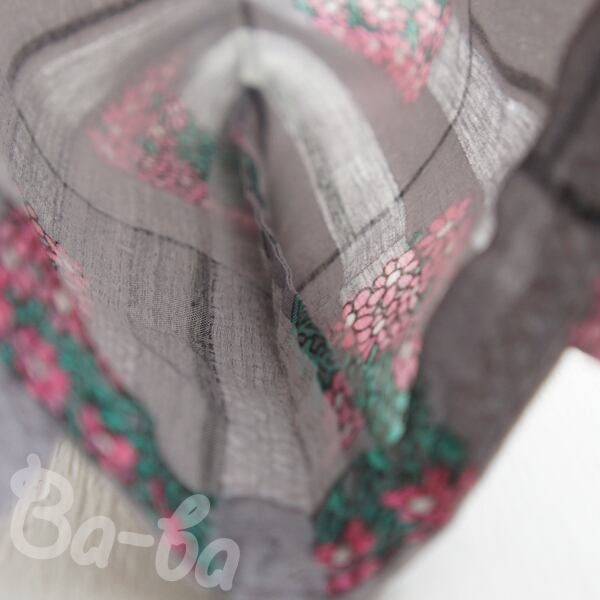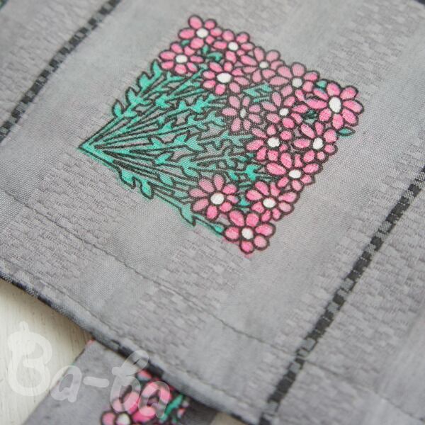 素材 : 化繊混紡(グレー地にピンクの花束柄)