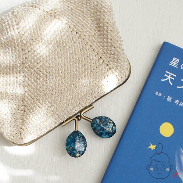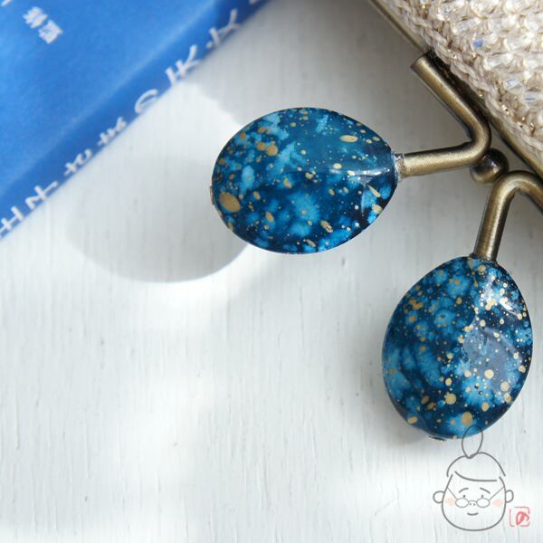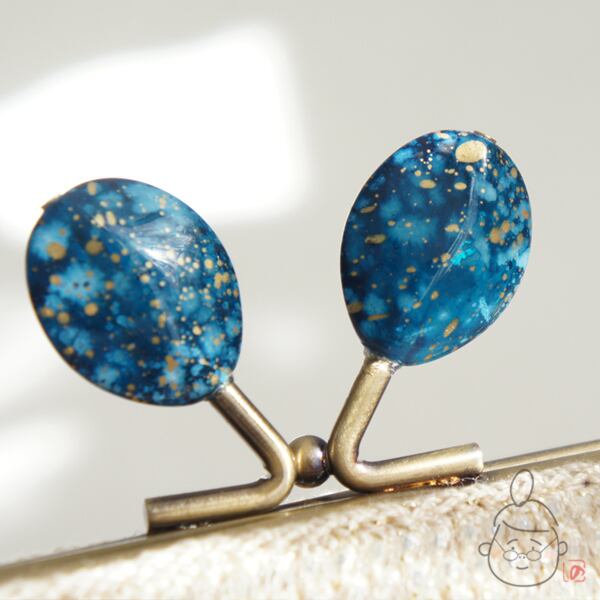 口金 : アンティークゴールド、コズミックブルーつまみ、12.5cm、角型