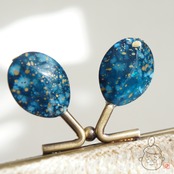 ベース部分は透け感のあるブルー、ゴールドのペイント、素材はアクリル樹脂。