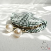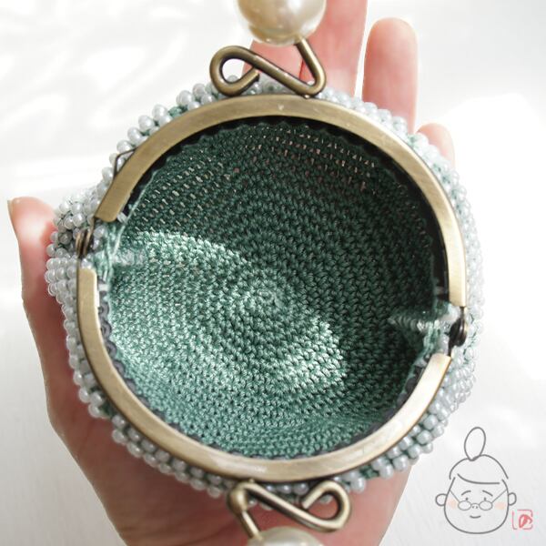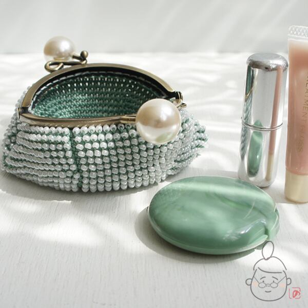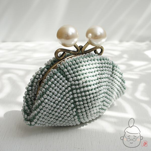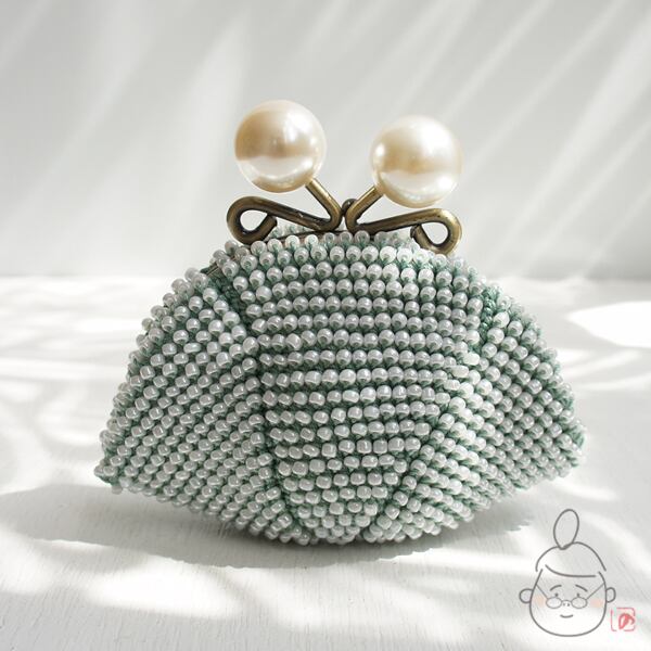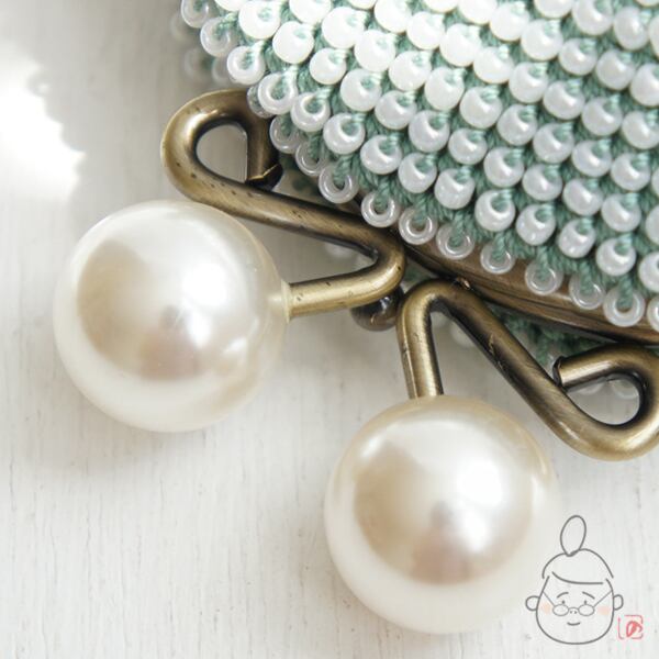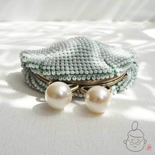 ばあば作☆総ガラスビーズの「大きめパール」がま口(pastel green・1264)