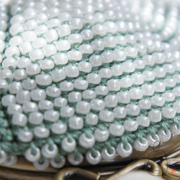 本体はガラスビーズを全面に一粒づつ編み込みました。